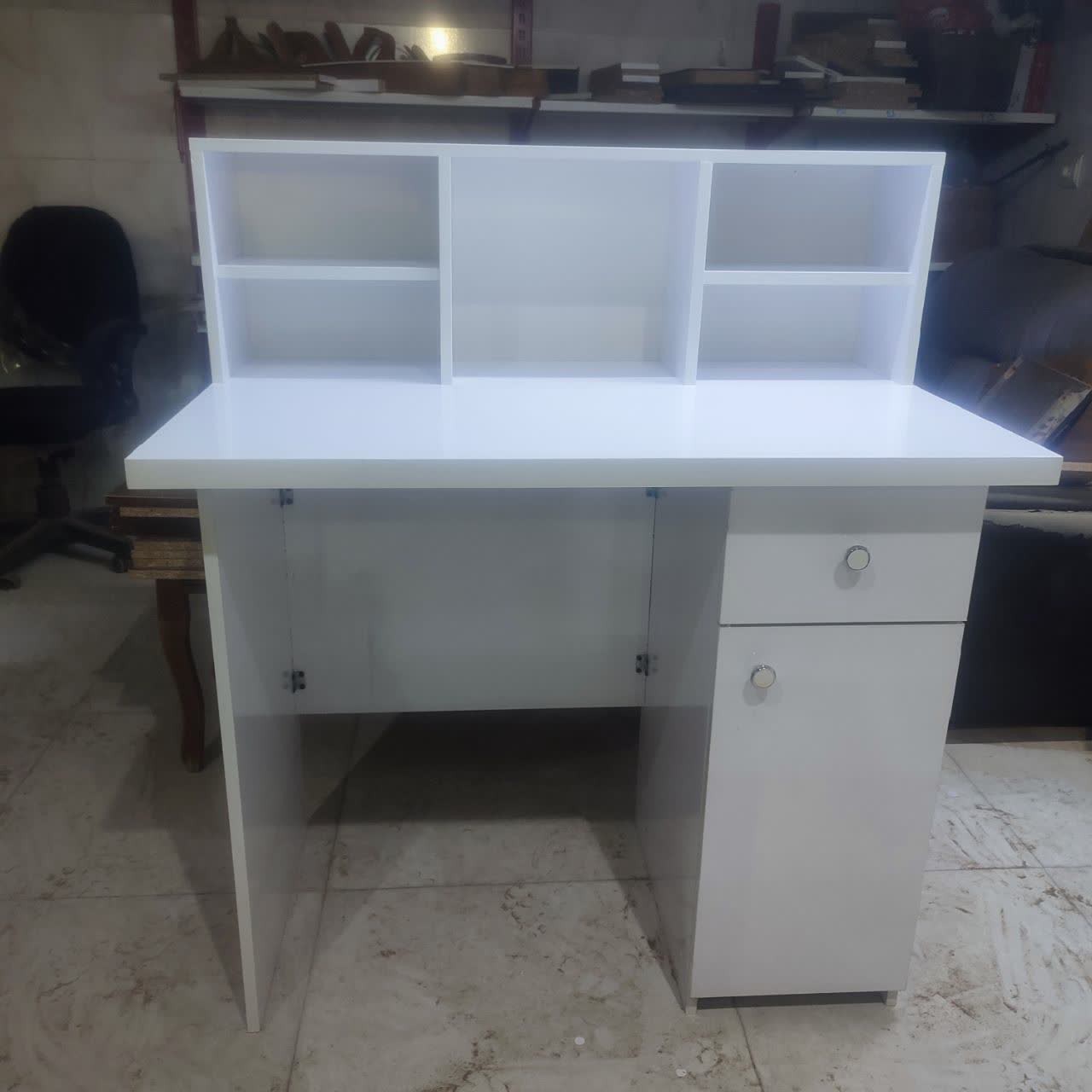 کتابخانه سایز بزرگ 100*60 دارای یک کتابخانه در قسمت روی میز و یک کمد و یک کشو در قسمت زیر میز یک کار محکم و عالی جنس این کار از ملا مینه درجه یک، نوار پی وی سی برای محافظت بیشتر کار در برابر رطوبت و اتصالات تمام پیچ برای استحکام بیشتر کار می باشد کارهای سفارشی با ابعاد دلخواه هم پذیرفته می شود ارسال توسط باربری فقط به مراکز استان ها و شهر هایی که باربری مستقیم از مشهد دارند صورت می گیر و هزینه باربری بصورت و بر عهده مشتری محترم می باشد و هزینه پرداختی در باسلام صرفا جهت بسته بندی محصول می باشد صنایع چوب دارچین مشهد، عبادی18, بین حسین باشی 16و18 09054548970