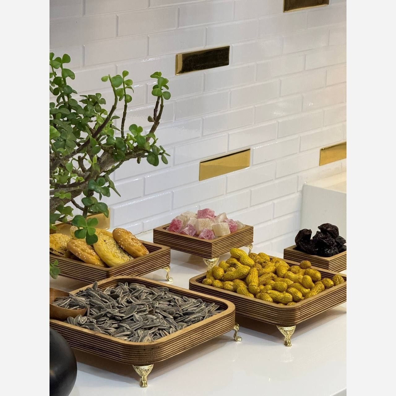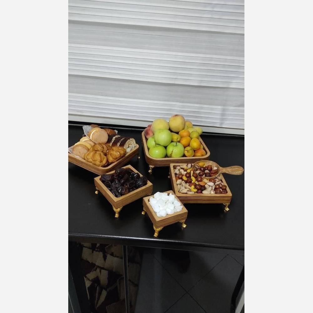 سینی 5 تیکه طرح مربع پایه دار ضخیم عمق 30 میل کیفیت عالی 100٪ روغن گیاهی پایه ها از جنس فلزی با رنگ ثابت کیفیت درجه 1