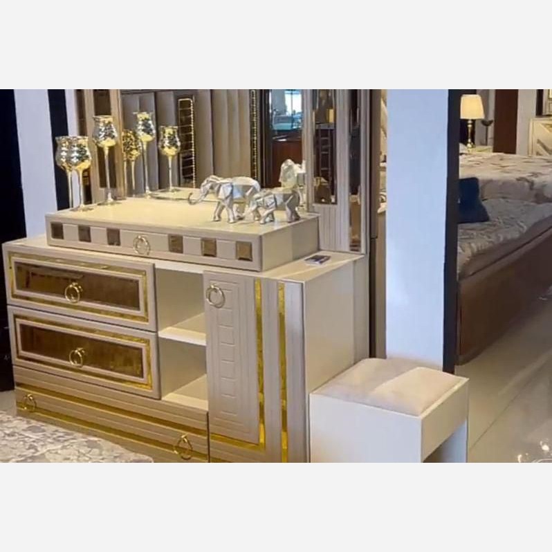 تختخواب زمرد شیک و جذاب یه مدل نامبر وان همه چیز تمام برای جهیزیه عروس جنس ام دی اف و ملامینه سایز دونفره شامل تخت و پاتختی و میزا آرایش و صندلی ارسال به سراسر کشور بصورت