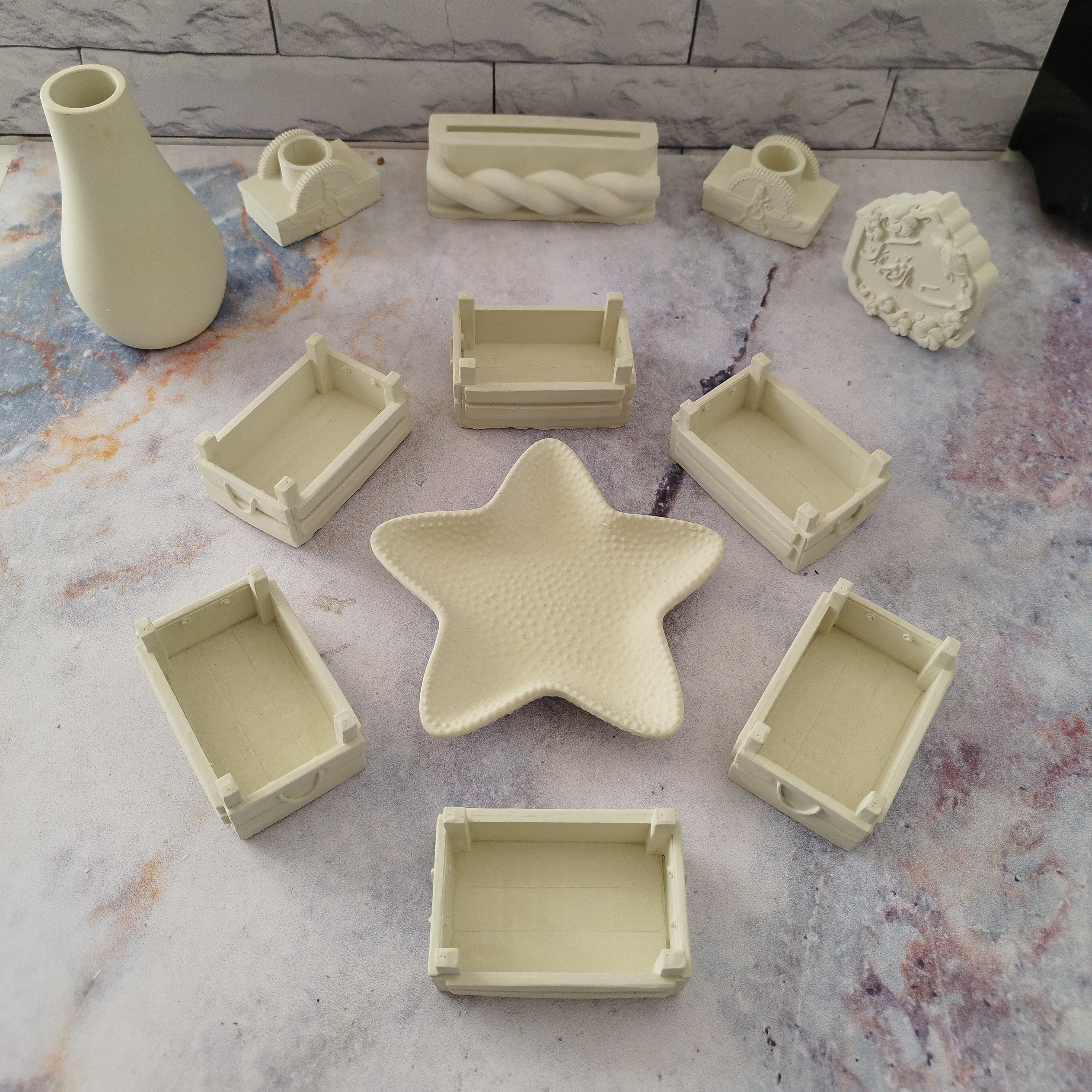 این ست هفتسین زیبا از بتن پلیمری یا بتن سبک با فرمولاسیون سنگ مصنوعی ساخته شده و طراحی خاص و مدرنی دارد. در مرکز تصویر، یک ظرف سبزه ستارهای با قطر 15 سانتیمتر قرار دارد که مخصوص سبزه طراحی شده و جلوهای خاص به سفره هفتسین میبخشد. اطراف این ظرف، هفت سبد هفتسین با وزن 87 گرم و ابعاد 8.6 سانتیمتر طول و 5 سانتیمتر عرض قرار گرفته است که برای قرار دادن اجزای سنتی هفتسین ایدهآل هستند. همچنین در این ست، جا شمعی اصالت با وزن 72 گرم و ابعاد 6.5 سانتیمتر طول و 4 سانتیمتر عرض طراحی شده که زیبایی و شکوهی خاص به چیدمان نوروزی میبخشد. در پسزمینه، یک جا آینهای با طراحی طنابی دیده میشود که ابعادی برابر با 12.3 سانتیمتر طول، 4.5 سانتیمتر عرض و 3.5 سانتیمتر ارتفاع دارد و وزنی معادل 275 گرم دارد. این جا آینهای، علاوه بر کاربرد تزئینی، نمادی از روشنایی و شفافیت در سفره هفتسین است. این مجموعه با طراحی یکدست و استفاده از بتن پلیمری یا سنگ مصنوعی، علاوه بر استحکام بالا، حالتی مدرن و مینیمال دارد که برای دکوراسیونهای امروزی و شیک انتخابی عالی محسوب میشود.