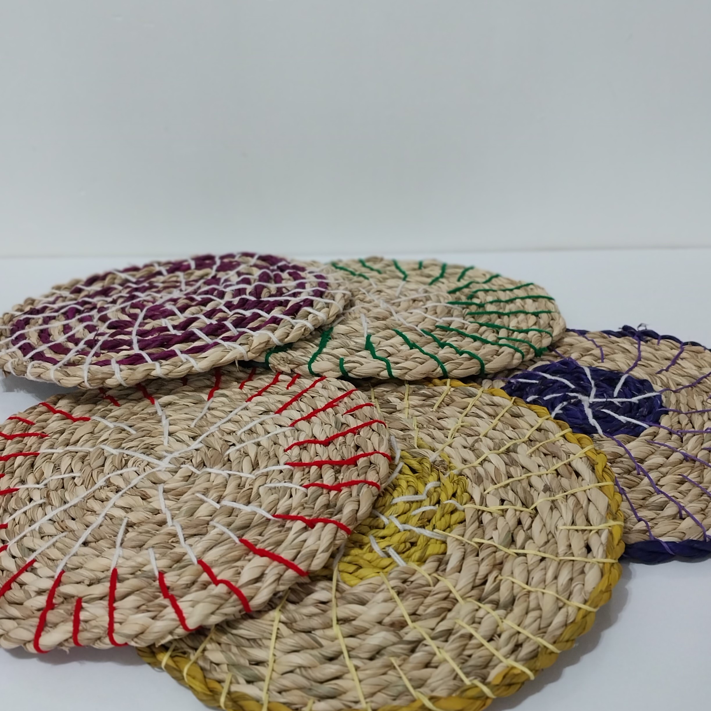 تهیه شده با نخ رنگی وحصیر رنگی وکار شده با دوخت روکار