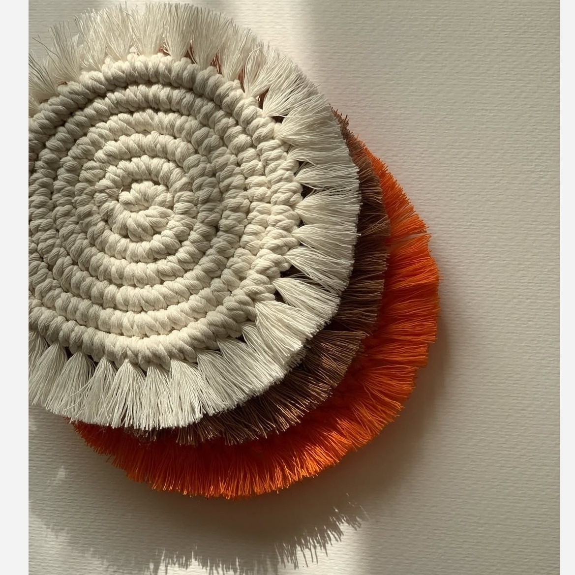 زیر لیوانی های زیبا و جذاب مکرومه که میتونید در رنگ دلخواه سفارش بدید این کار رو میتونید به عنوان زیر قابلمه هم سفارش بدید قیمت درج شده برای یک زیر لیوانی هست