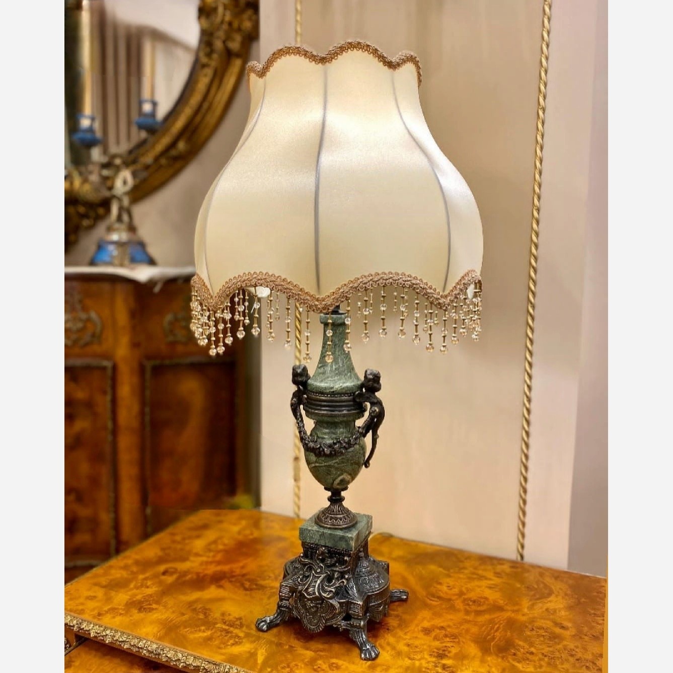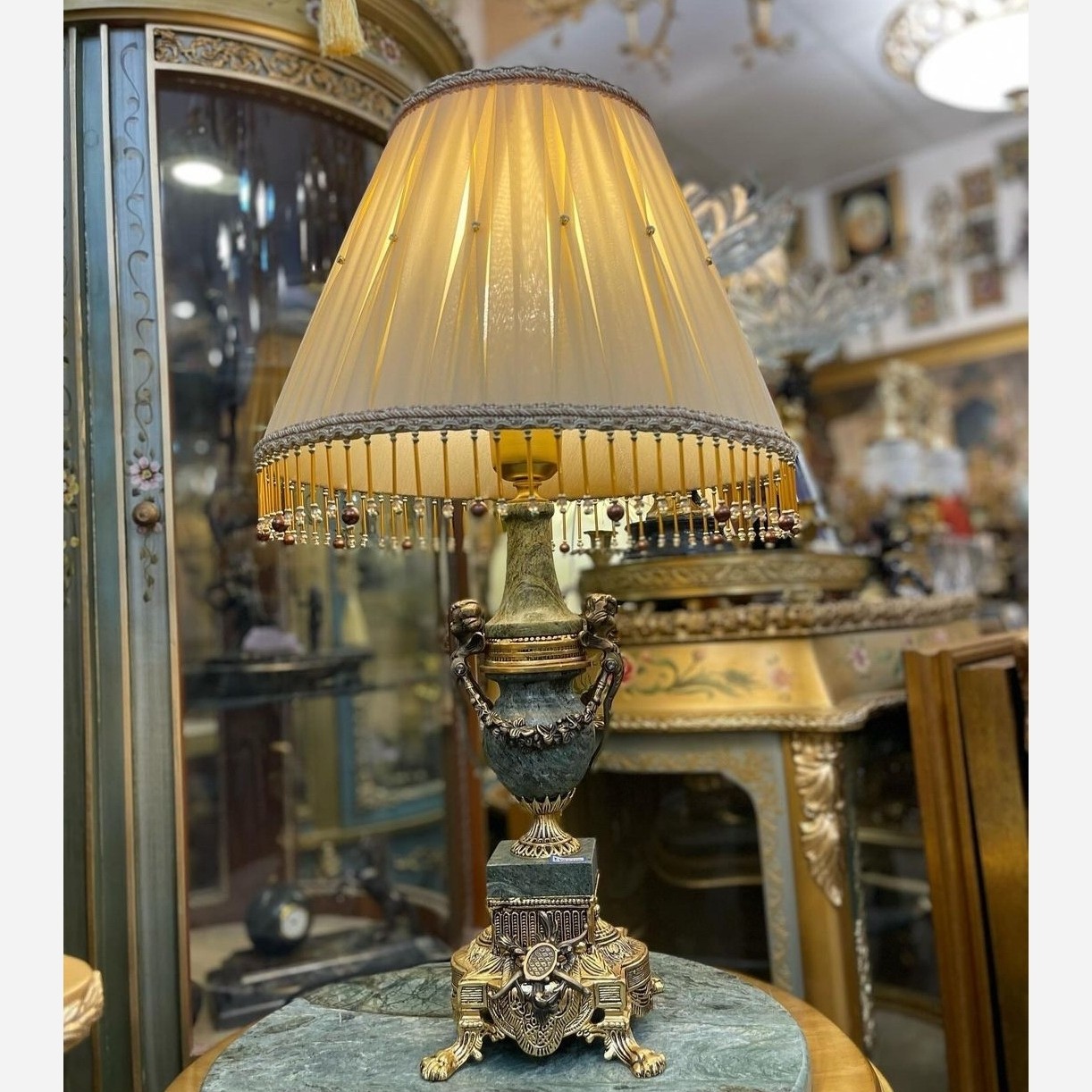 آباژور عقابی رومیزی سنگ سبز آنتیک گلد پتینه برنز چراغ خواب شب خواب چراغ مطالعه مبلمونسرا مدل 233437