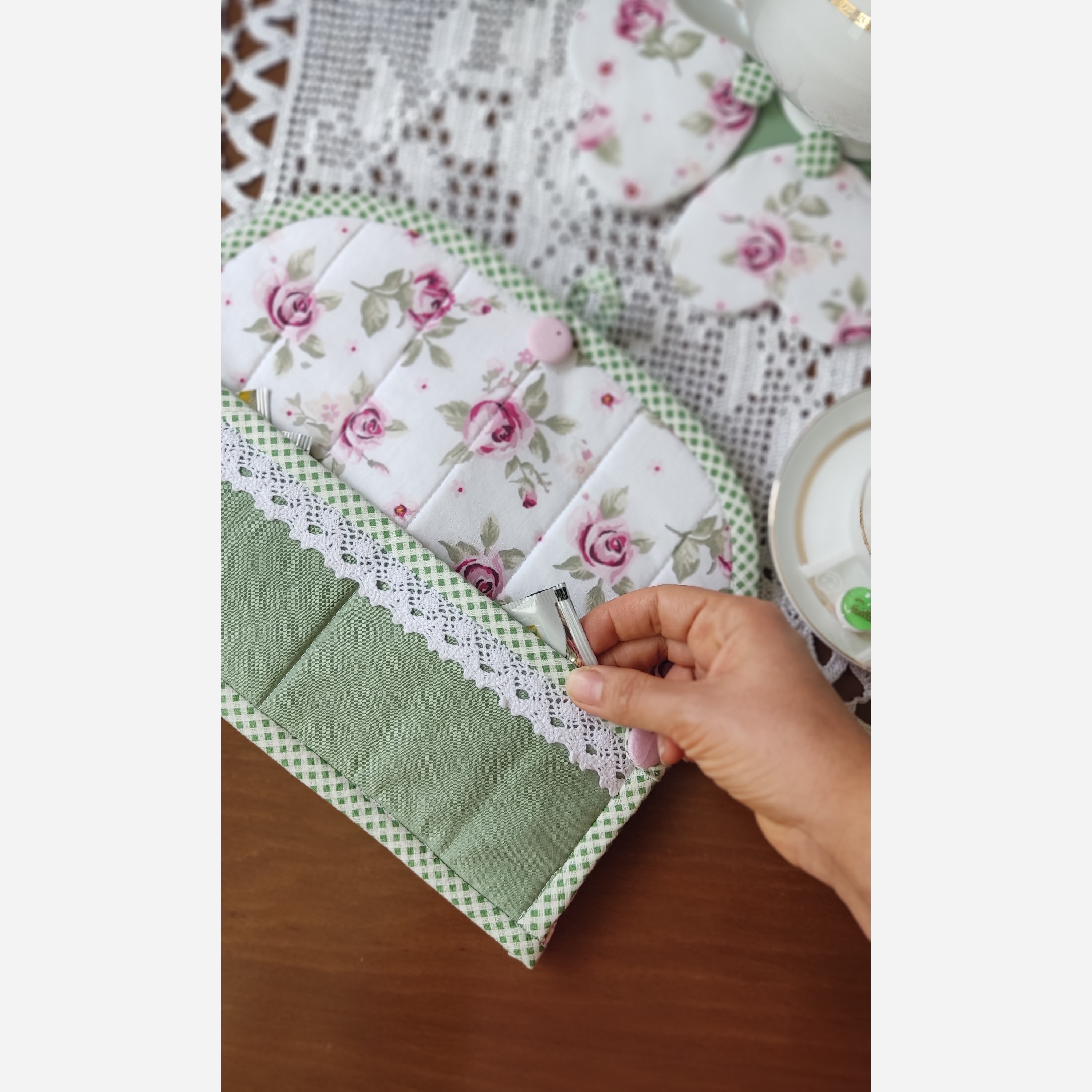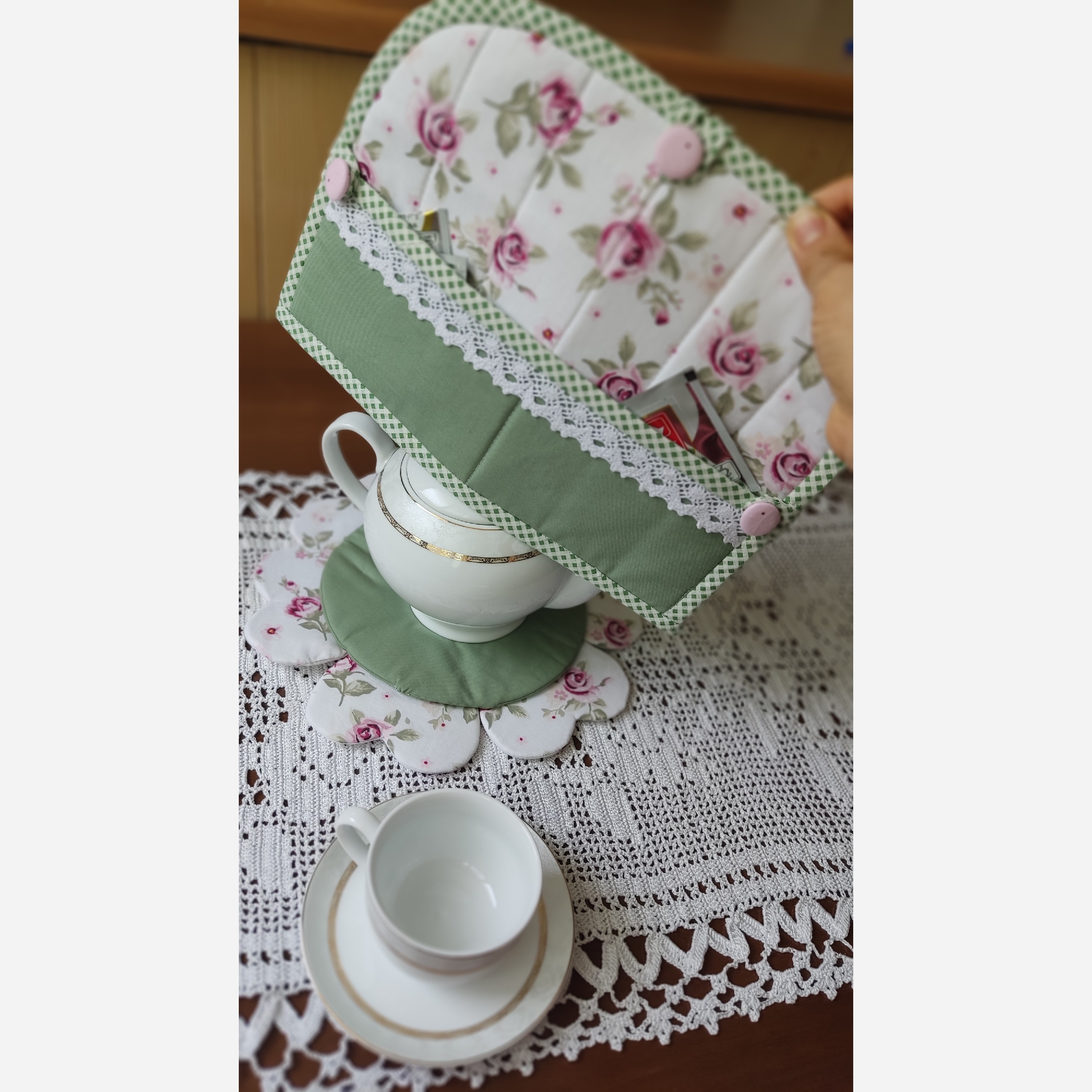دمکن قوری کمک میکنه چاییتون بهتر دم بکشه .یا وقتی میری پیکنیک یا تو باغ و حیاط میتونی قوری رو بزاری کنارت باعث میشه چاییت داغ بمونه.دو تا جیبم داره . حجم داره و برای چن سایز قوری میتونی استفاده کنی