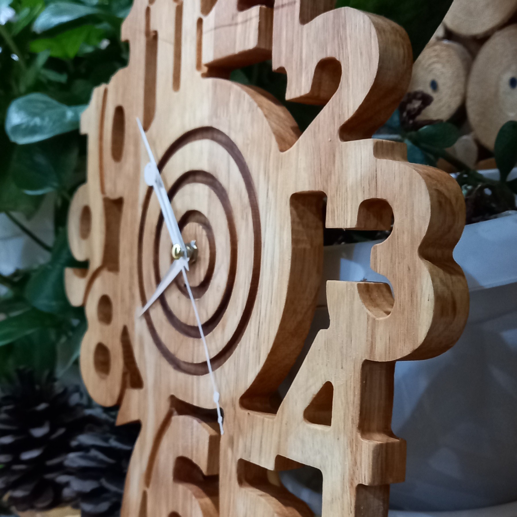 ساعت دیواری چوبی با قطر 35سانتی متر و طرح اعداد با چوب فینگر جوینت از نوع رابر به ضخامت18میلی متر روغن کاری شده با روغن گیاهی Hemel قابل شستشو با دست.به همراه موتور ساعت.