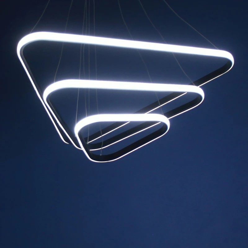 لوستر مدرن سه حلقه مثلث هشت حالت نوری دارای ریموت کنترل و اپلیکیشن موبایل مبلمونسرا مدل 244373