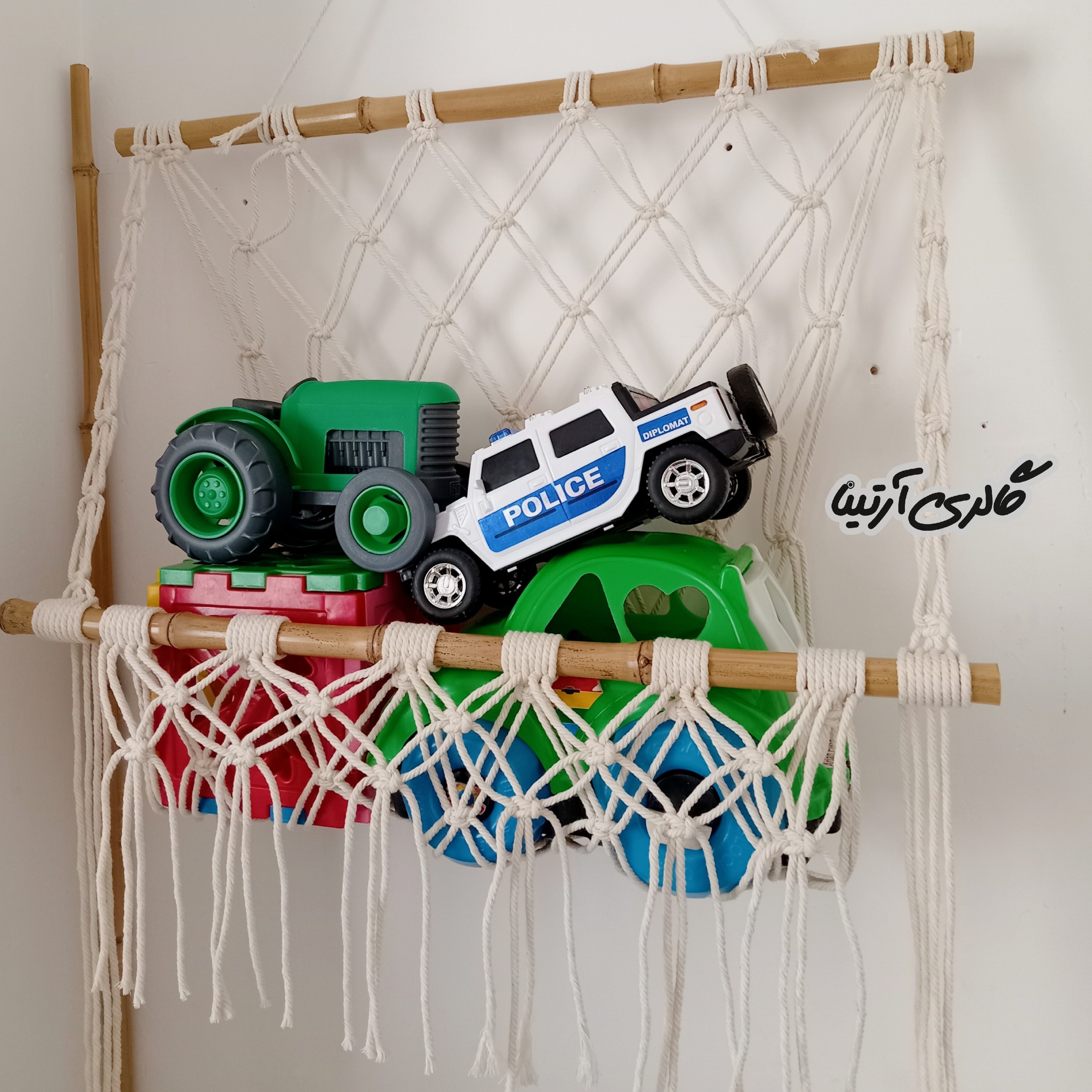 اسمش رو گذاشتم شلف مکرومه بدون تخته چوب 😅 برای نظم دادن به اسباب بازی ها و کتاب ها و هر چیز دیگه ای خیلی عالیه. تو آشپزخونه هم میتونی استفاده کنی قابل شستشو🫧 ابعاد 60 در 50 سانتیمتر قابل سفارش در رنگ دلخواه قبل از ثبت سفارش، رنگ و ابعاد رو در گفتگو اعلام کنید ☺️🙏