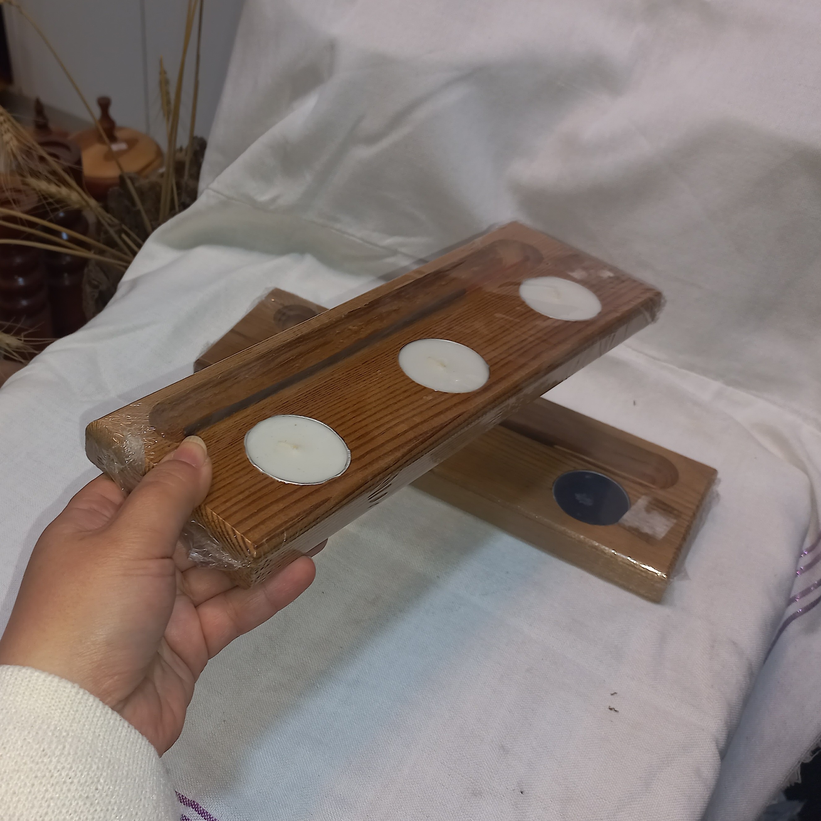 جاعودی جاشمعی چوبی با 3 شمع وارمر و یک شاخه عود مبلمونسرا مدل 286008