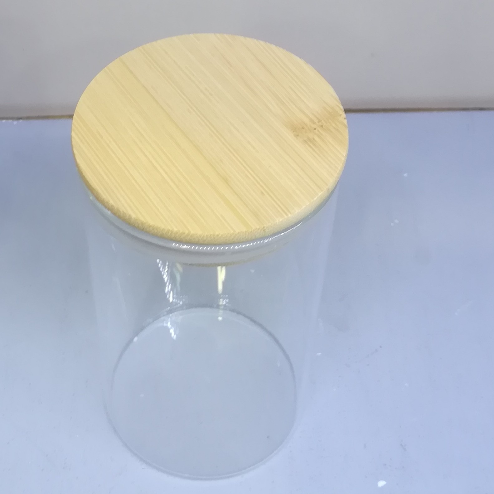 جا ادویه درب بامبو واشر دار شیشه ای شفاف