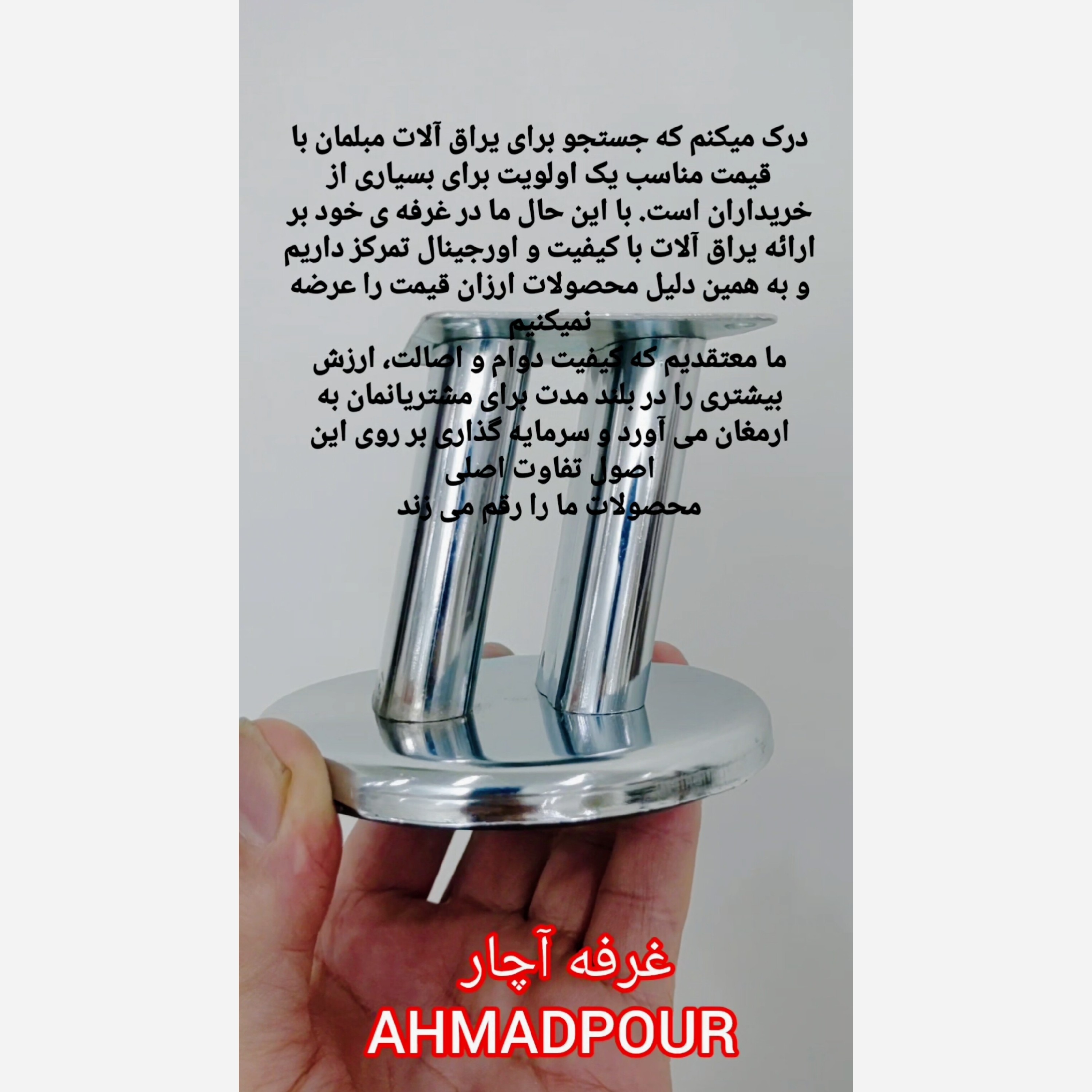 اصالت اعتبار خریدنی نیست باید زحمت فراوانی کشید پایه مدل دوستونی حداقل سفارش برای ارسال 4 عدد میباشد ارتفاع 8 سانت 10*10*8 ابعاد کفی 6*8 آبکاری نیکل کروم اولین تولید کننده پایه مدل دو ستونی یک انتخاب ایده ال ویژگی ها و مزایای پایه های فلزی مبل 1-دارای دوام بیشتری نسبت به پایه های چوبی و پلاستیکی می باشد 2-دارای تنوع و رنگهای زیادی می باشد 3-دارای ظاهری زیبا شیک و جذاب می باشد 4-جابه جایی مبلها راحت تر می باشد 5-از شکستگی پایه هنگام اسباب کشی جلوگیری می شود 6-عمر خیلی طولانی تری نسبت به نوع چوبی دارد 7-نصب سریع و آسان 8-قابلیت باز و بسته شدن و تعویض در یک نگاه کوتاه فرق اصلی بین پایه های فلزی چوبی و پلاستیکی در مقاومت وزن دوام و ظاهر است. به طور مختصر پایه های فلزی X - مزايا استحکام بالا ظرفیت بارگیری بیشتر ثبات خوب دوام طولانی و معمولاً امکان تنظیم پایه ها مناسب برای پایه های سنگین یا استفاده مکرر معایب سنگین بودن احتمال زنگ زدگی یا فرسایش در صورت پوشش نامناسب جوابگویی گرما سایش کمتر نسبت به چوب معمولاً گران تر کاربری نمونه مبلمان خانگی با دید صنعتی Outdoor با پوشش ضدآب سازه هایی که تحمل وزن بالا دارند. پایه های چوبی مزایا ظاهر گرم و طبیعی سبکتر از فلز قابل تغییر و پرداخت آسان معمولاً قیمت مناسب تر و مناسب برای طراحی های داخلی معایب حساس به رطوبت و تغییر شکل انقباض)، احتمال آسیب ناشی از حشرات یا پوسیدگی نگهداری و نگهداری بیشتر برای حفظ ظاهر ظرفیت بار کمتر از فلز کاربری نمونه مبلمان داخل منزل با طراحی کلاسیک یا طبیعی فریم های سبک پایه های پلاستیکی مزايا سبک ارزان مقاومت در برابر رطوبت و خوردگی قالب پذیر بودن در اشکال مختلف و نگهداری آسان. معایب ظرفیت بار پایین تر نسبت به فلز احتمال ترک یا فرسودگی در اثر گرما یا تابش نور ظاهر معمولاً کمتر لوکس و ممکن است نیاز به تعویض سریع تر باشد. کاربری نمونه پایه های سبک وزن برای کاربری های کوتاه مدت، مبلمان سبک یا پروژه هایی که قیمت و وزن اهمیت بیشتری دارد. راهنمای سریع تصمیم گیری وزن و دوام مهم است؟ فلز را ترجیح بدهید. ظاهر گرم و طبیعی با قیمت مناسب چوبی گزینه خوبی است. بودجه پایین و استفاده سبک؟ پلاستیکی گزینه مناسب است.
