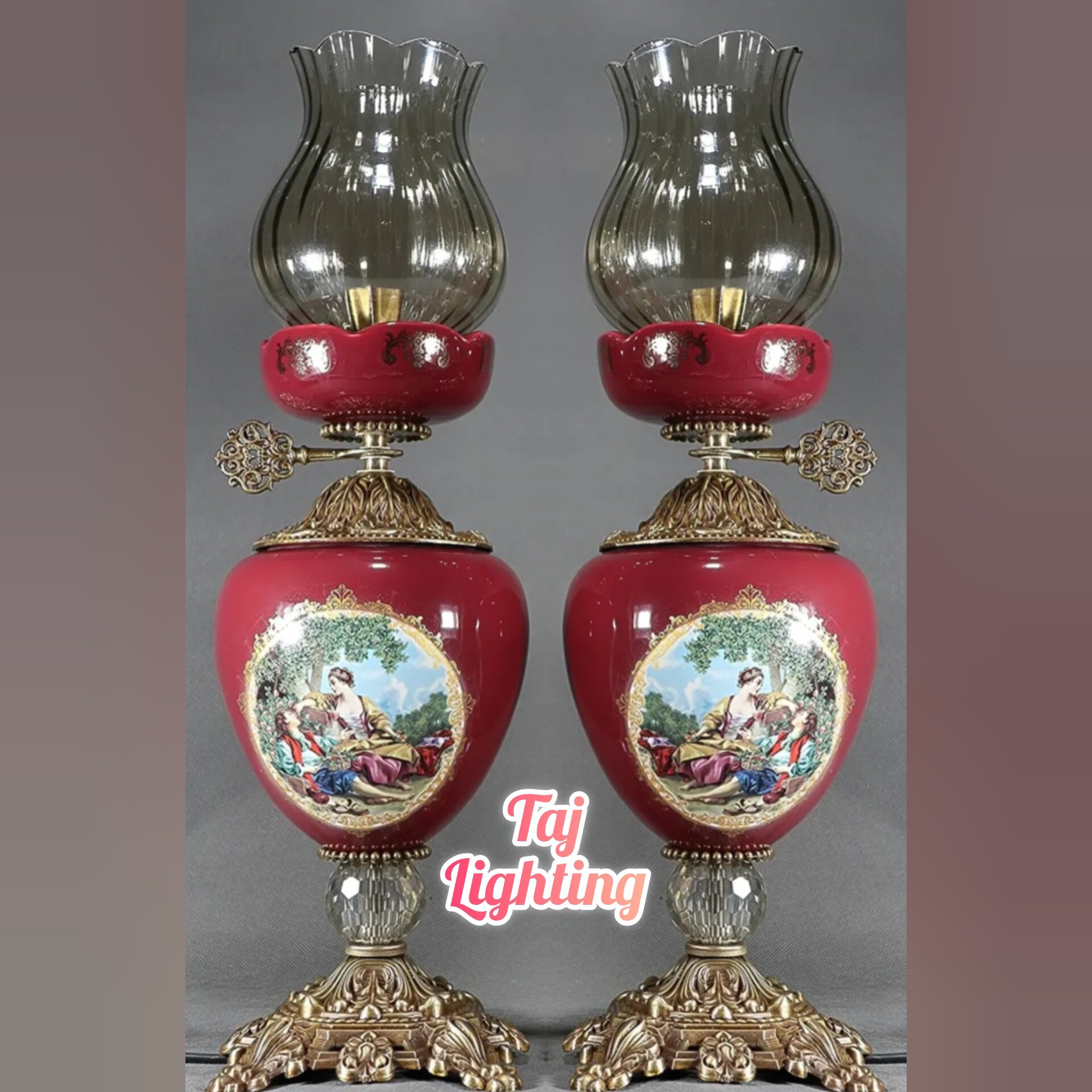 آباژور چراغ رومیزی همراه کاپ رومیزی طرح لیلی و مجنون مبلمونسرا مدل 230488