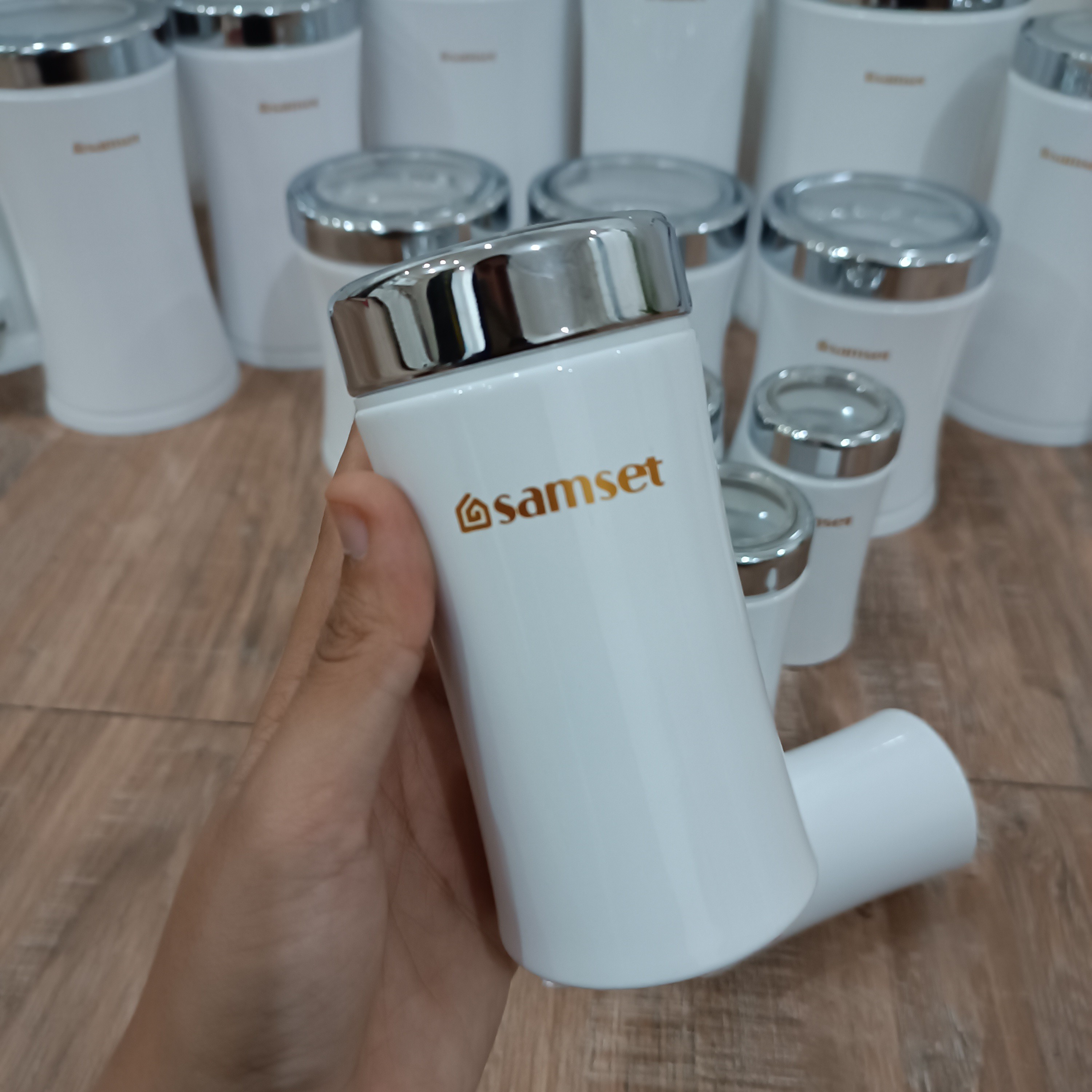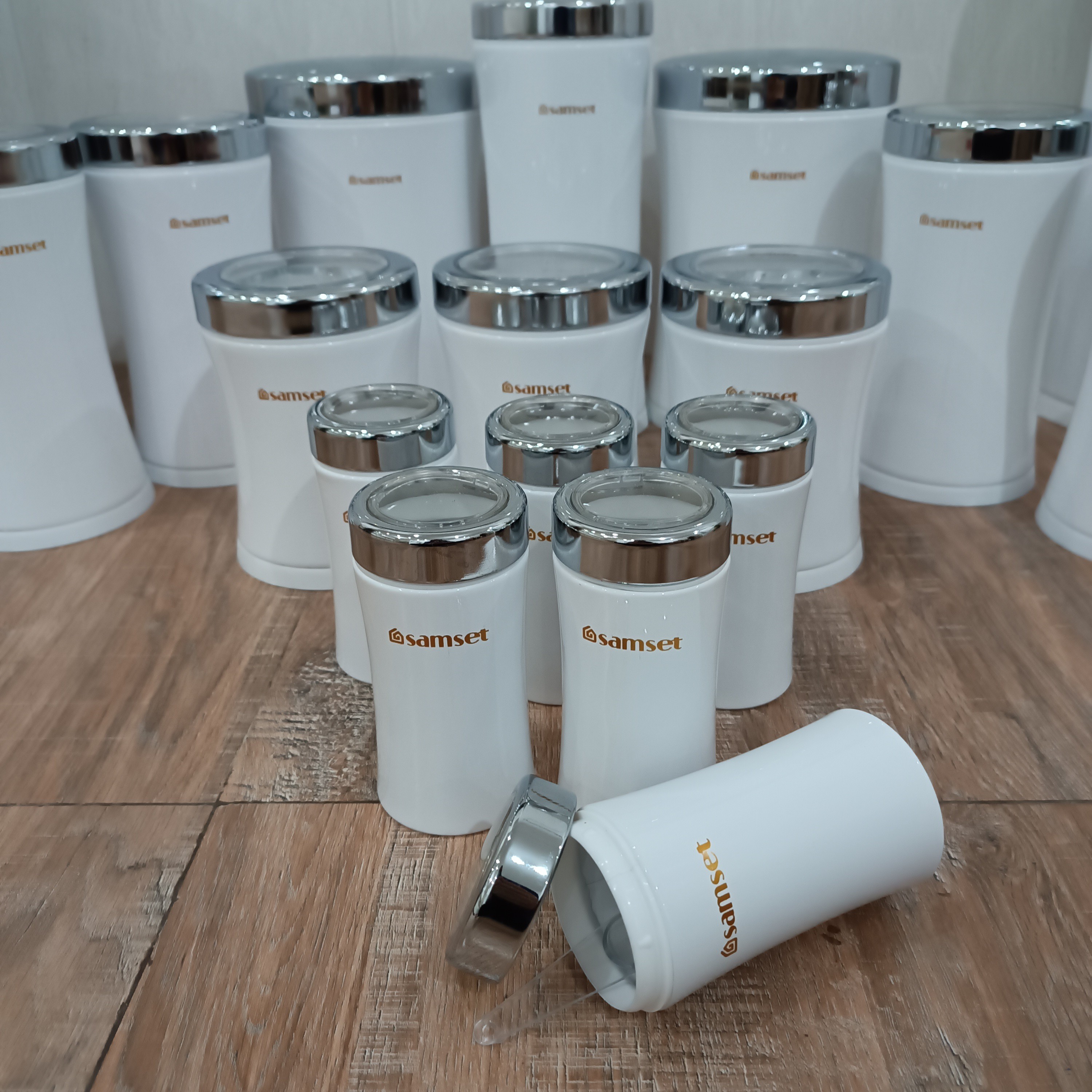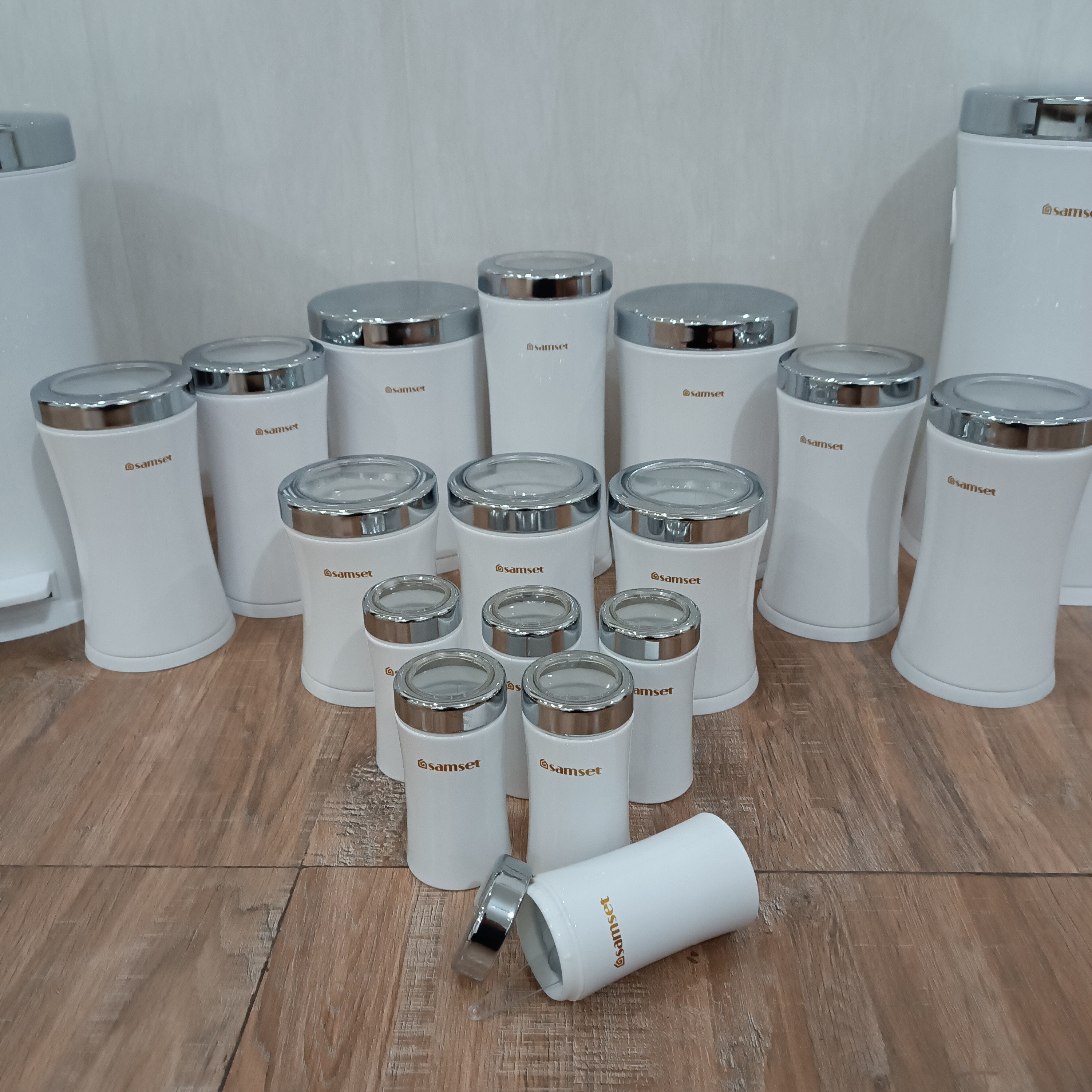 سرویس آشپزخانه ۱۸ پارچه الیا درب کروم کمر باریک سطل برنج متوسط وزن :1.96کیلوگرم ارتفاع :41.5 سانتیمتر قطر: 25 سانتیمتر ظرفیت: 12 لیتر قوطی حبوبات درب نشانگر 4 عددی وزن :325 گرم ارتفاع :22.5 سانتیمتر قطر:12 سانتیمتر ظرفیت:1.5 کیلوگرم قوطی حبوبات درب نشانگر 3 عددی وزن :295 گرم ارتفاع :16.5 سانتیمتر قطر: 11.5 سانتیمتر ظرفیت: 1 کیلوگرم جاادویه درب نشانگر 6 عددی وزن :670 گرم ارتفاع :12.7 سانتیمتر قطر: 6.5 سانتیمتر ظرفیت: 300 گرم سطل قند و شکر وزن :1.3 کیلوگرم ارتفاع :24.8 سانتیمتر قطر: 25.6 سانتیمتر ظرفیت: 7 کیلوگرم جاماکارونی درب نشانگر وزن :410 گرم ارتفاع :26.5 سانتیمتر قطر: 12 سانتیمتر ظرفیت: 2 کیلوگرم سطل زباله پدالی متوسط وزن :2.045 کیلوگرم ارتفاع :41.5 سانتیمتر قطر: 25 سانتیمتر ظرفیت: 12 کیلوگرم