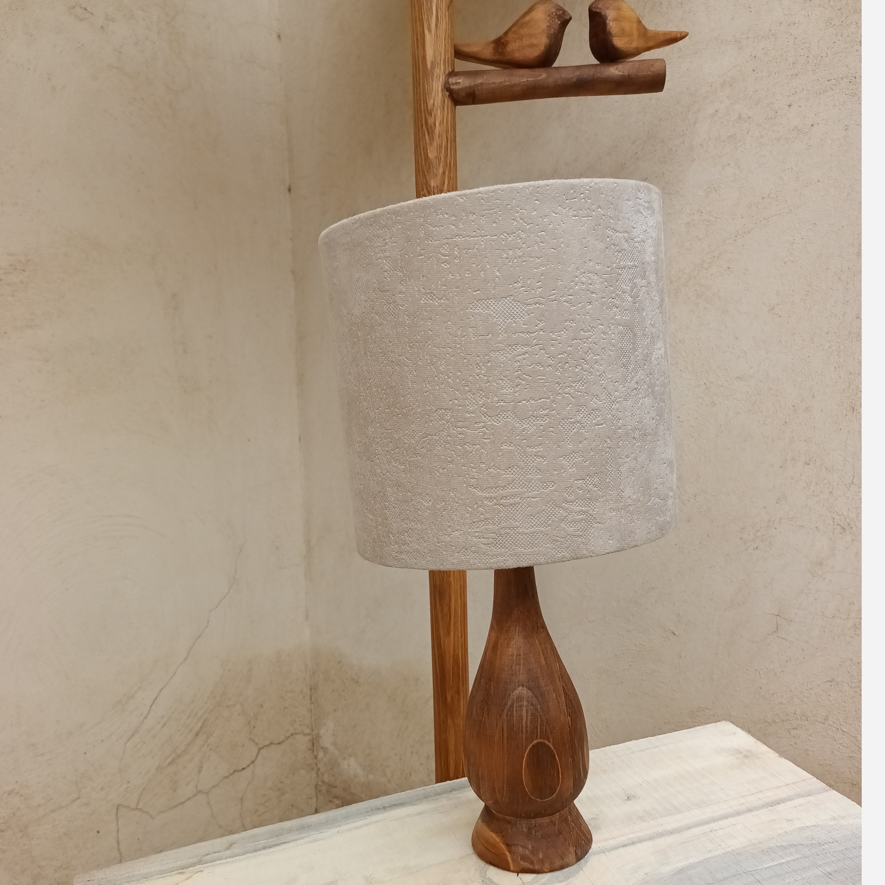 آباژور رومیزی سالنی چوبی تک پایه خراطی چراغخواب مبلمونسرا مدل 231310