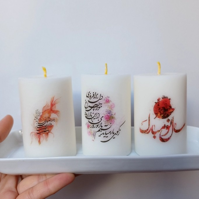شمع استوانه نوروز مبارک شمع سال نو مبارک شمع ماهی نوروزی یا مقلب القلوب شمع ترنسفری مبلمونسرا مدل 286794