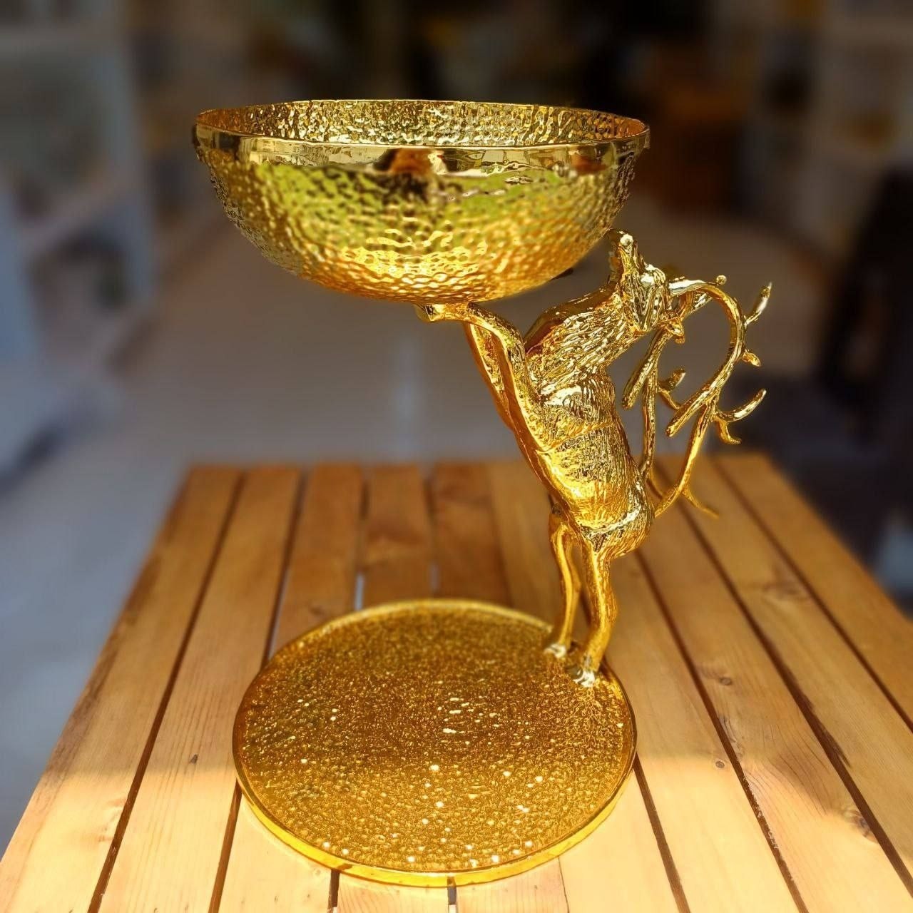 آجیل خوری طرح گوزن پرشی چکشی طلایی و سیلور آبکاری سوپر براق با ضمانت جنس آلومینیوم درجه یک رنگ ثابت 4سال ضمانت