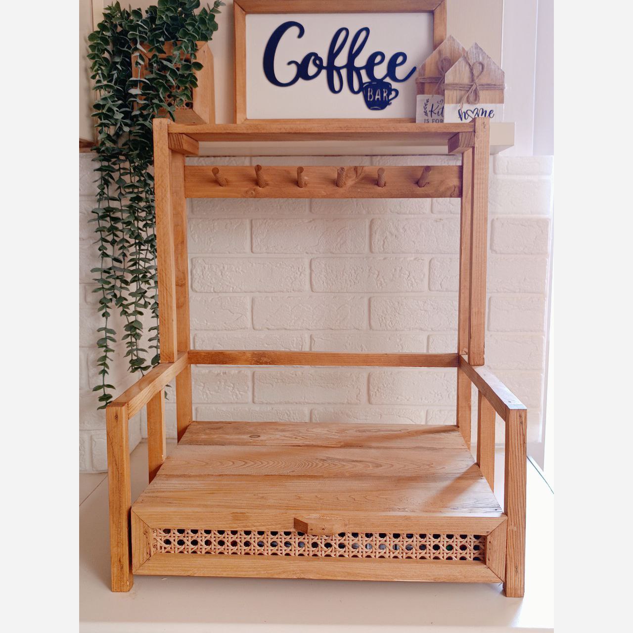 استند اسپرسوساز کشو حصیری طراحی و تولید دیا هوم جنس تمام چوب روس حصیر وارداتی ابعاد 43×34 ارتفاع 52