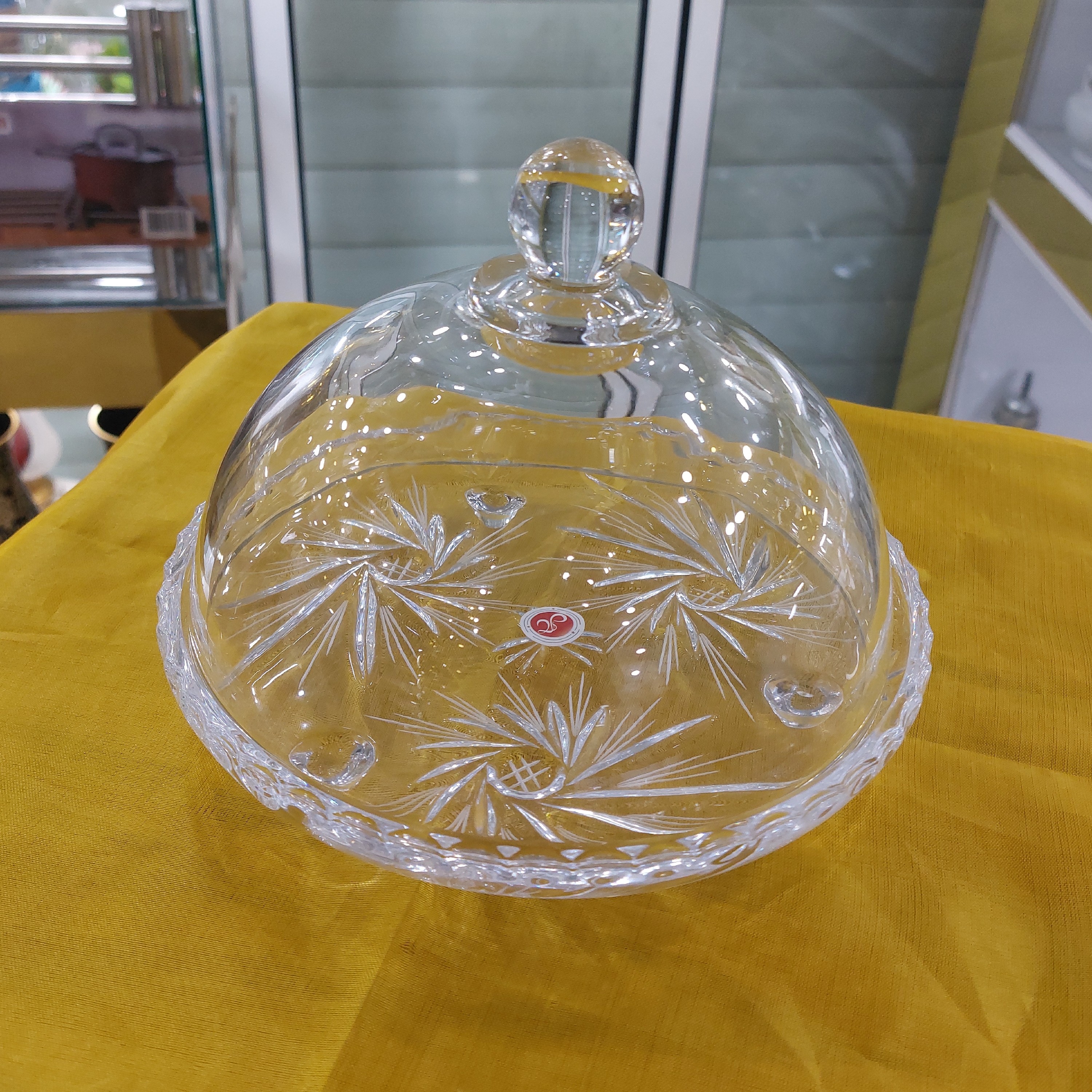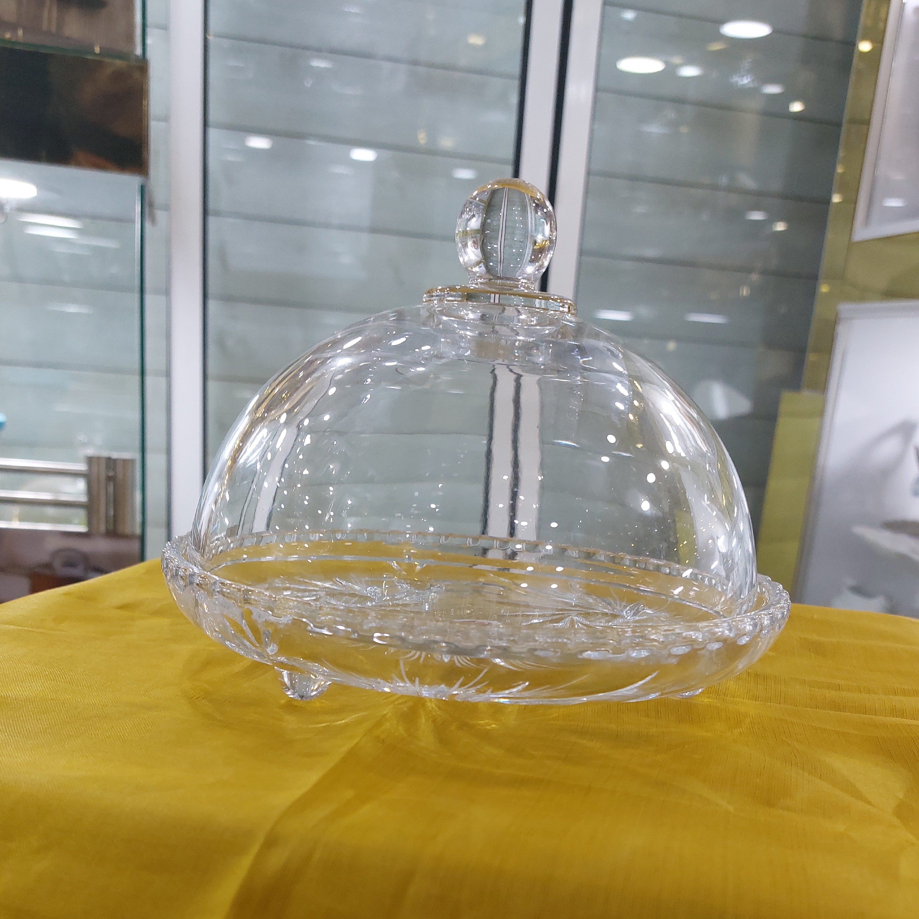 این ظرف 17.5 سانتی متر عرض در 14 سانت متر ارتفاع می باشد ، مدل خورشیدی سه پایه تراش دار و درب پیرکس ، کاربرد شیرینی خوری ،مدل جدید و بسیار شیک ، ساخت کشور چین