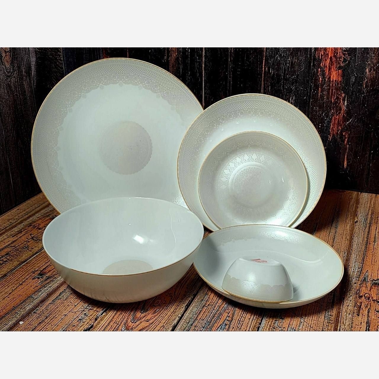 سرویس 26 پارچه آرکوپال مقصود تیسا خاکسری پلوخوری : 6 عدد خورشت خوری : 6 عدد پیش دستی : 6 عدد کاسه سالاد : 1 عدد دیس بیضی : 1 عدد کاسه ماست : 6 عد