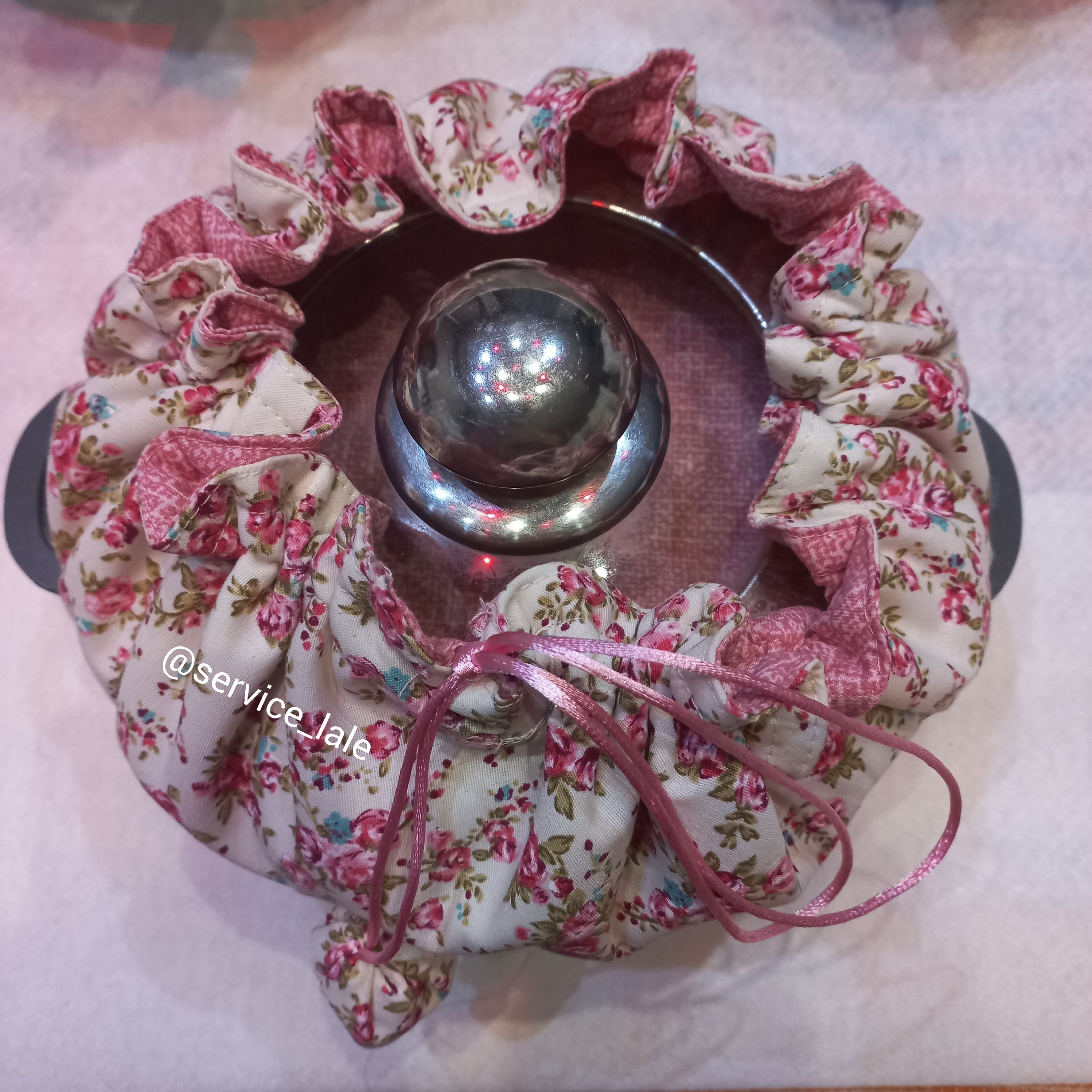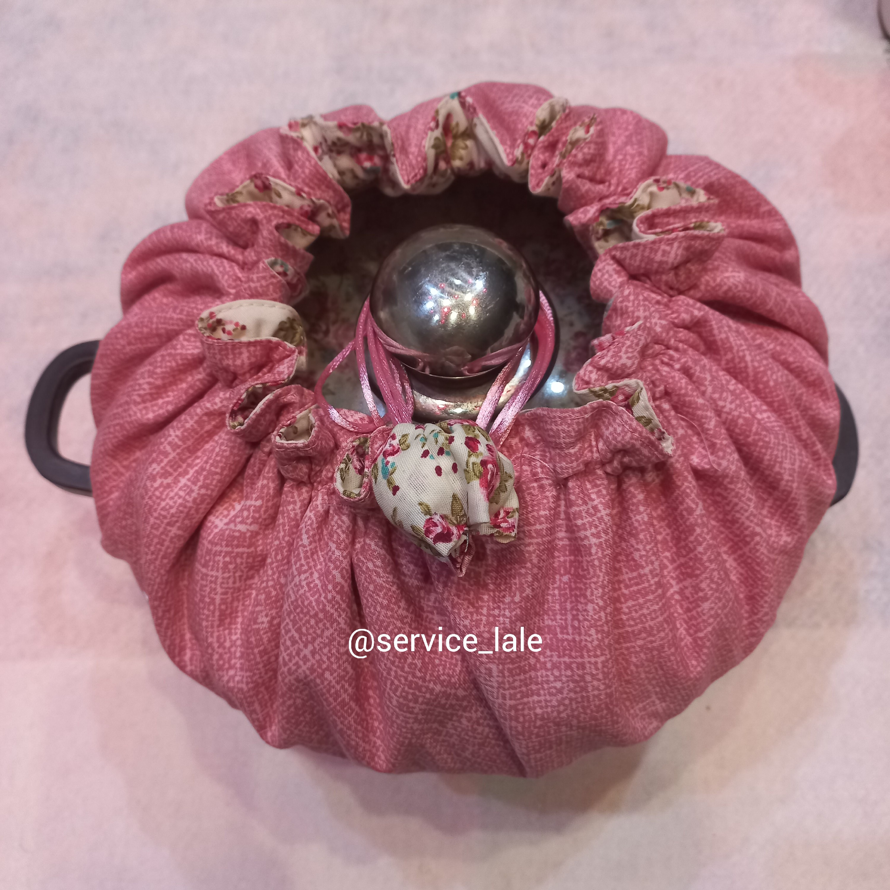 دمکنی فری سایز دورو که میشه پشت و رو کرد و از طرف دومش استفاده کرد. لبه ی کاز از نخ ماکارون استفاده شده. با نخ دور در قابلمه جمع میشه. بدون نوار اریب قابل شستشو داخل کار از پشم شیشه استفاده شده به صورت تکی هم قابل فروش هست قیمت تک را پیوی سوال کنید.