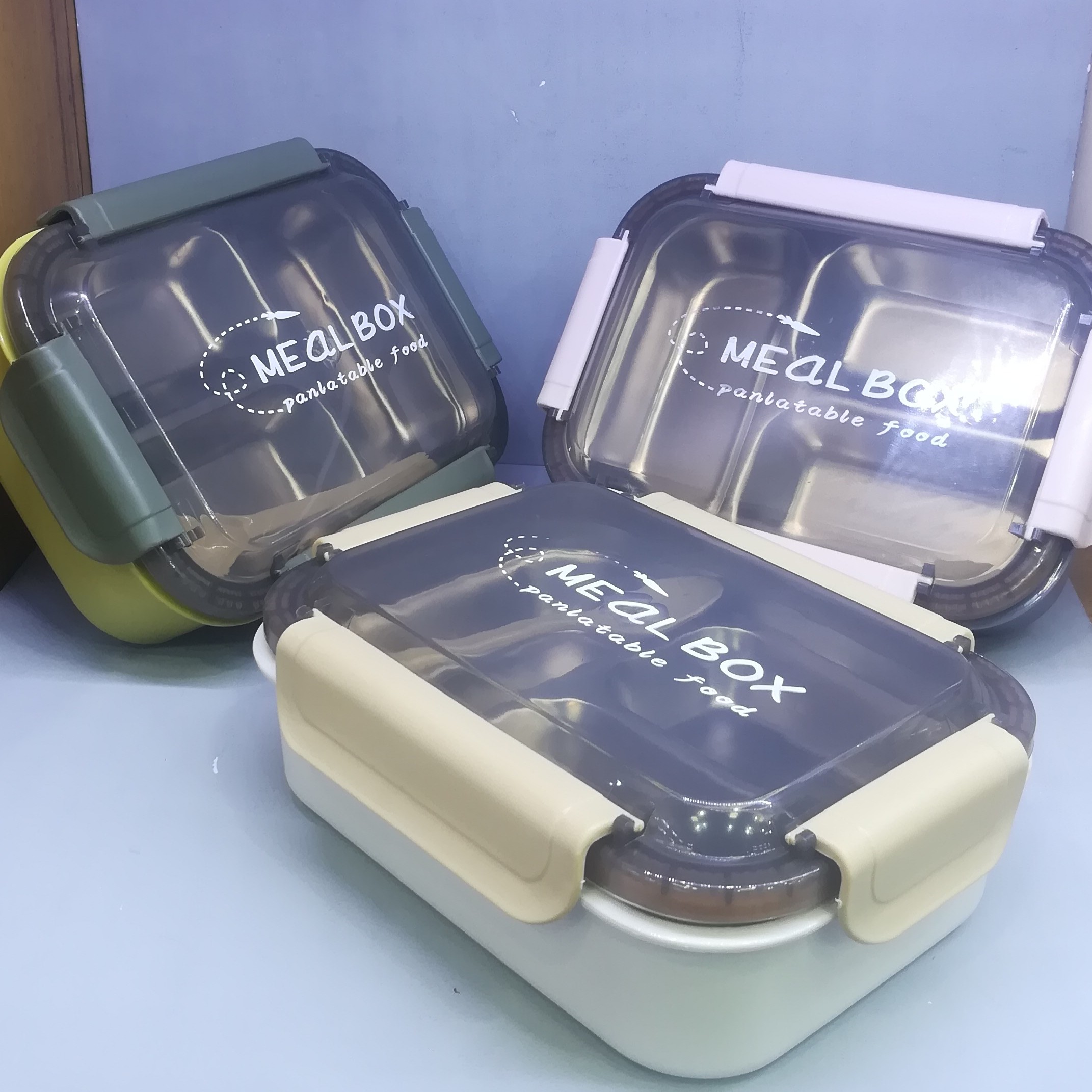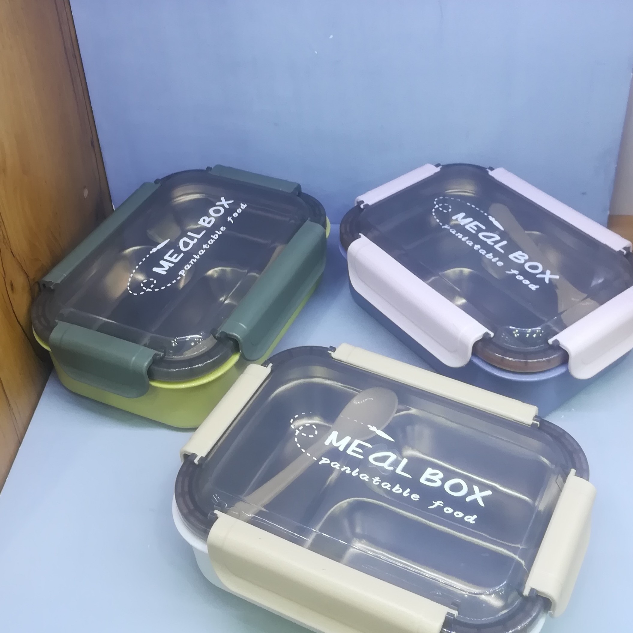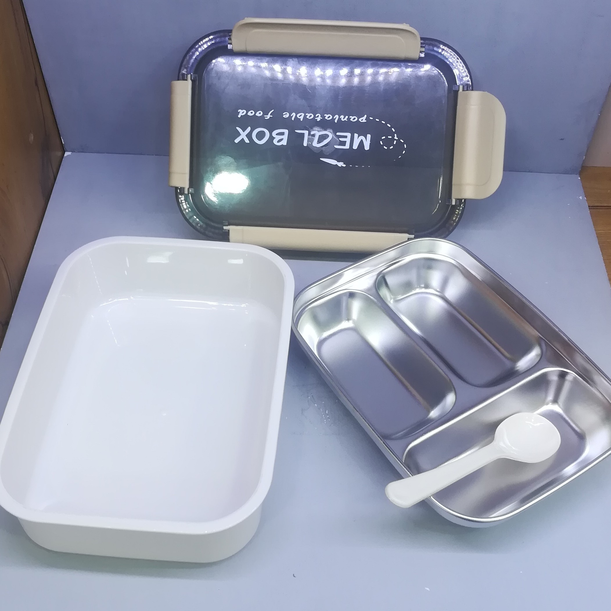 ظرف غذا استیل بانگ باکس سه قسمتی قاشق دار دور درب واشر دار استیل جدا شونده
