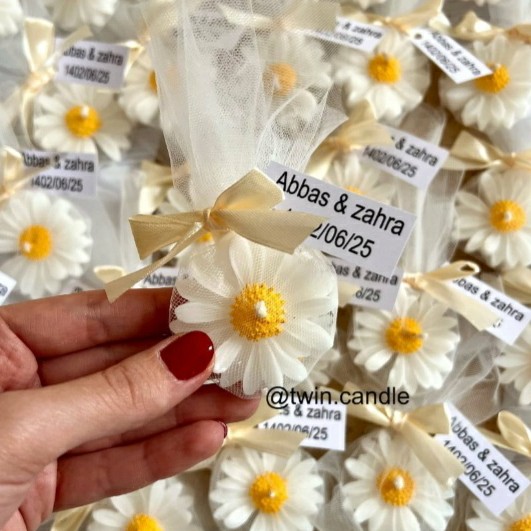 گیفت شمع بابونه با هر تزئینی که بخوابید قابل سفارشه داخل تور. تاپر . کارتی اگر مدلی مدنظرتونه عکسش بفرستید اگر قابل اجرا باشه براتون انجام میشه لطفا قبل از ثبت سفارش حتما هماهنگی کنید