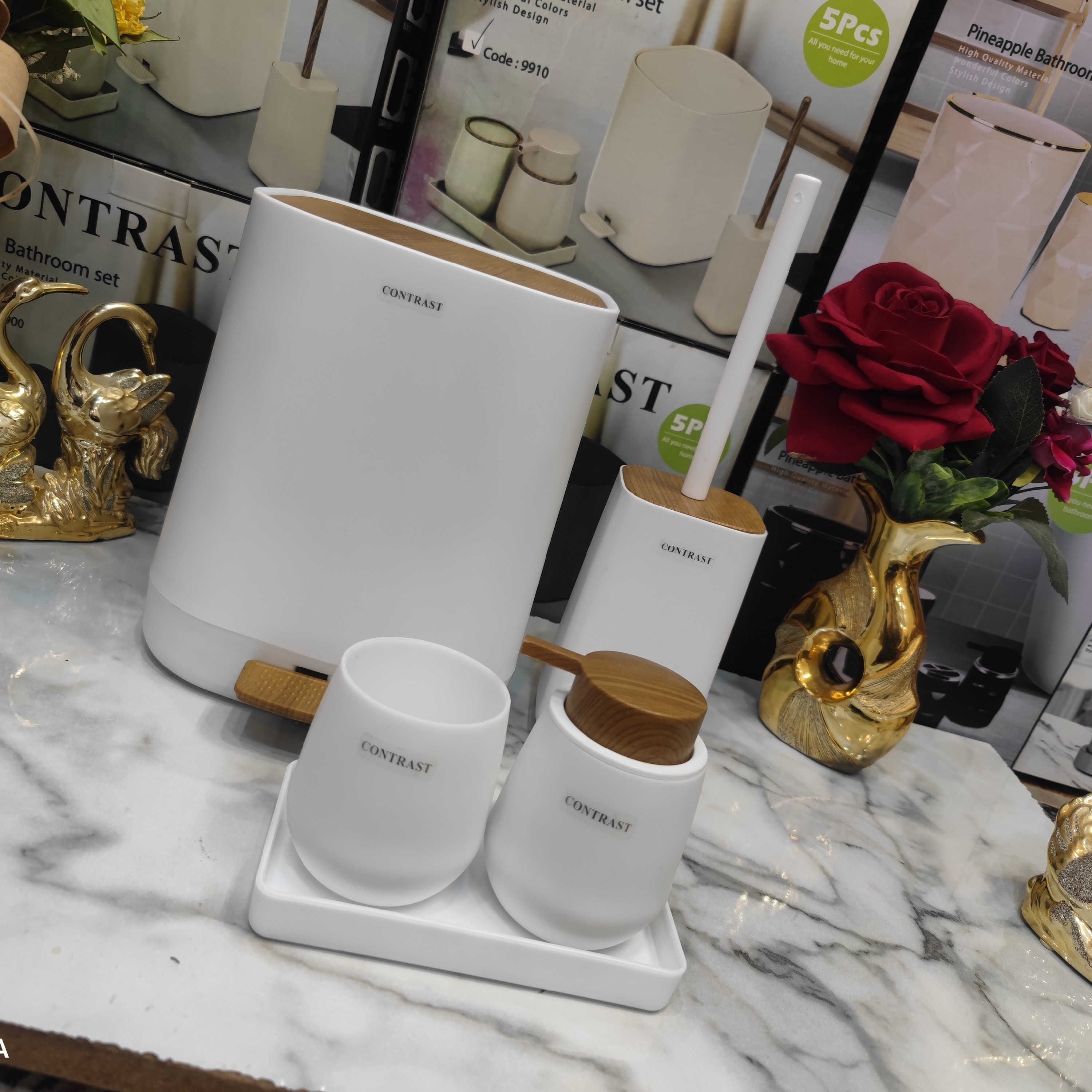 ست سرویس بهداشتی 5 پارچه طرح جدید و جذاب و پرطرفدار میامی رنگ سفید چوب برند کنتراست نو آکبند