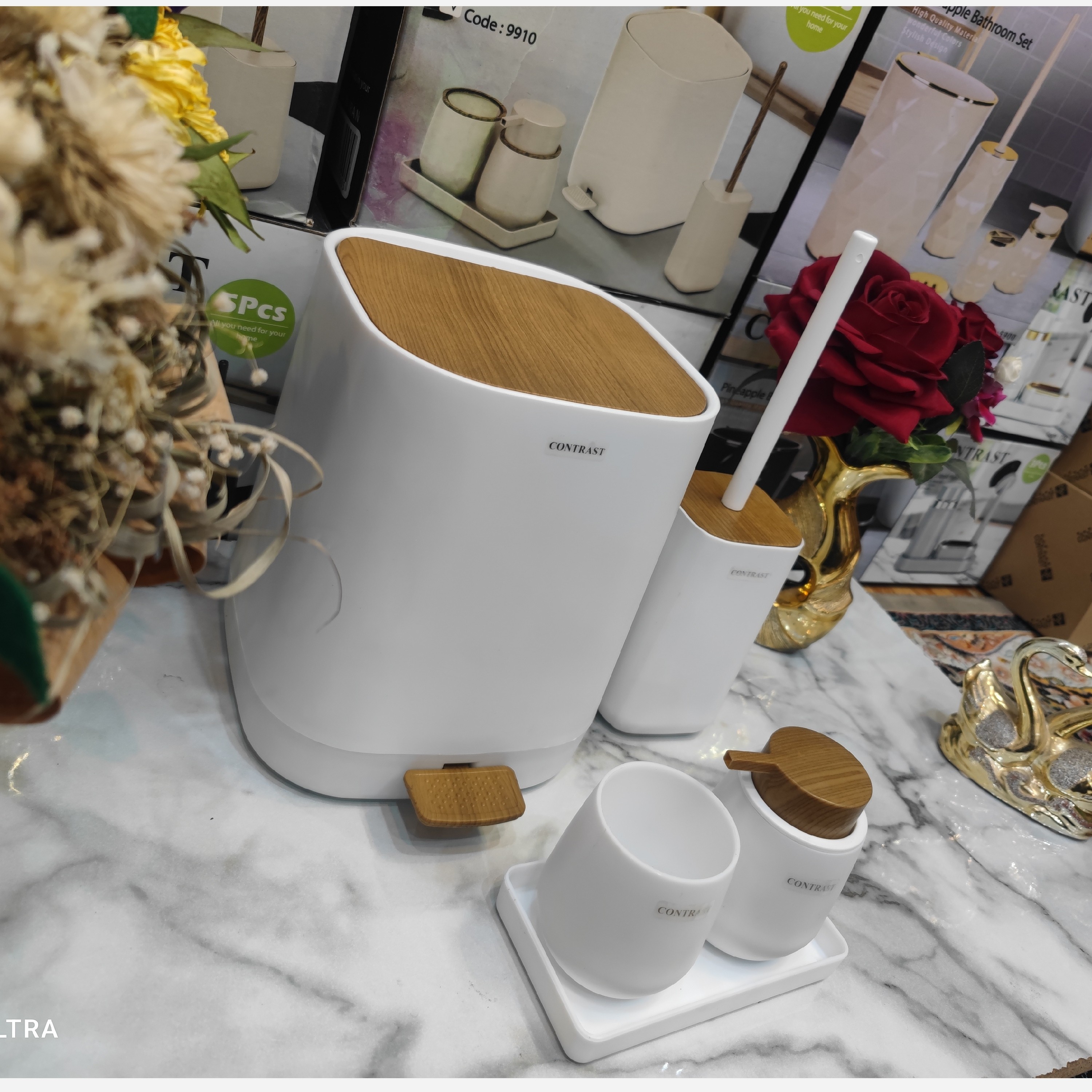 ست سرویس بهداشتی 5 پارچه طرح جدید و جذاب و صادراتی میامی چوب رنگ بسیار زیبا و پرطرفدار و جذاب سفید چوب برند کنتراست نو آکبند ساخته شده از پلاستیک فشرده اکرولیک درجه یک آنتی باکتریال رنگ جذاب و خاص سفید چوب طرح بسیار زیبا و جدید و شیک و صادراتی میامی ست سرویس بهداشتی شامل: 1. سطل زباله پدالی با درب آرامبند و تویی سطل جداگانه و اختصاصی و دارای دسته 2. برس و فرچه مخصوص شستشوی سرویس بهداشتی 3. جای مایع دستشویی با سرپمپ زیبا و باکیفیت و تضمینی 4. جای مسواک و خمیردندان 5 . کفی نگهدارنده جامایع و مسواک تضمین کیفیت ساخت عالی و بهترین کیفیت و نازلترین قیمت برای خریداران عزیز ارسال سریع به تمام نقاط کشور برای خریداران عزیز