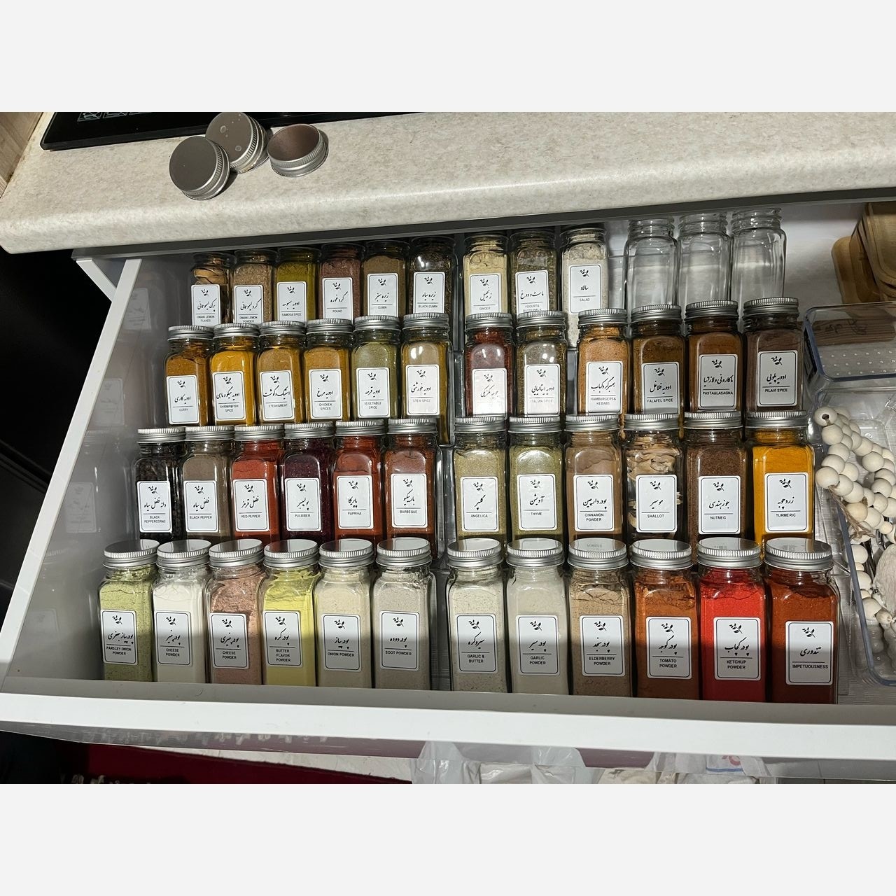 پک 18 عددی شیشه ادویه مک کارتی 14 سانتی متری پک شامل👇 ✅18 عدد شیشه ادویه مک کارتی ارتفاع 14 سانتی متر ✅18 عدد سری نمک پاشی ✅3 عدد استند پلکسی ایرانی ✅18 عدد لیبل ضدآب بدون نوشته 🔴ماژیک سی دی جهت نوشتن برچسب ها موجود و قابل سفارش است