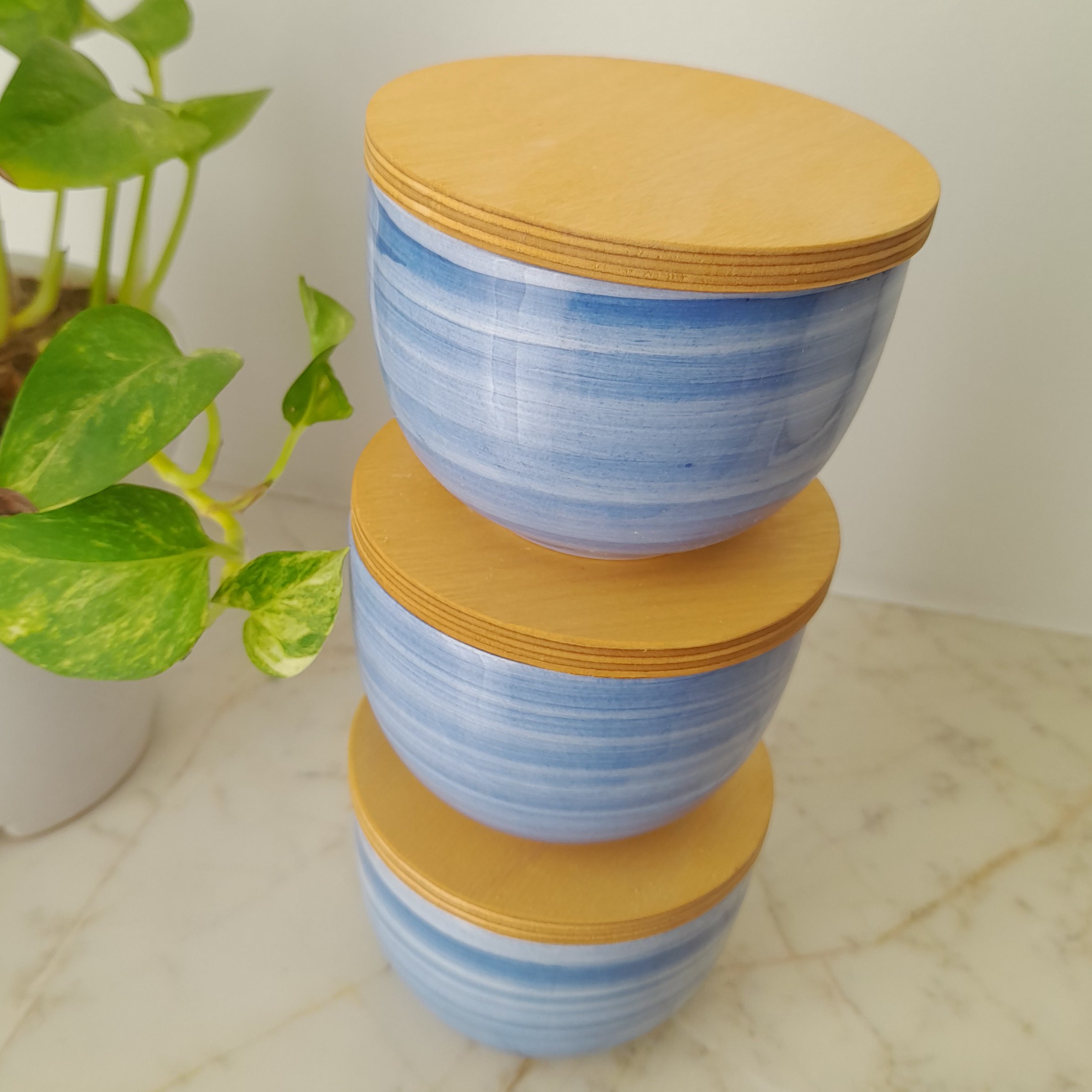 کاسه سرامیکی دستساز درب چوبین سرخ فام ابی و طوسی کاملا مصرفی مناسب همه چی قابل شستشو ارزان تک فروشی ندارد 3 عددی🌱✅️ مدل های دیگر در غرفه ..