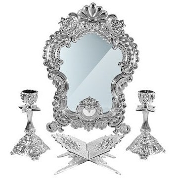 آینه بزرگ کاملیا رنگ نقره ای یک آینه یک جفت شعمدان و رحل