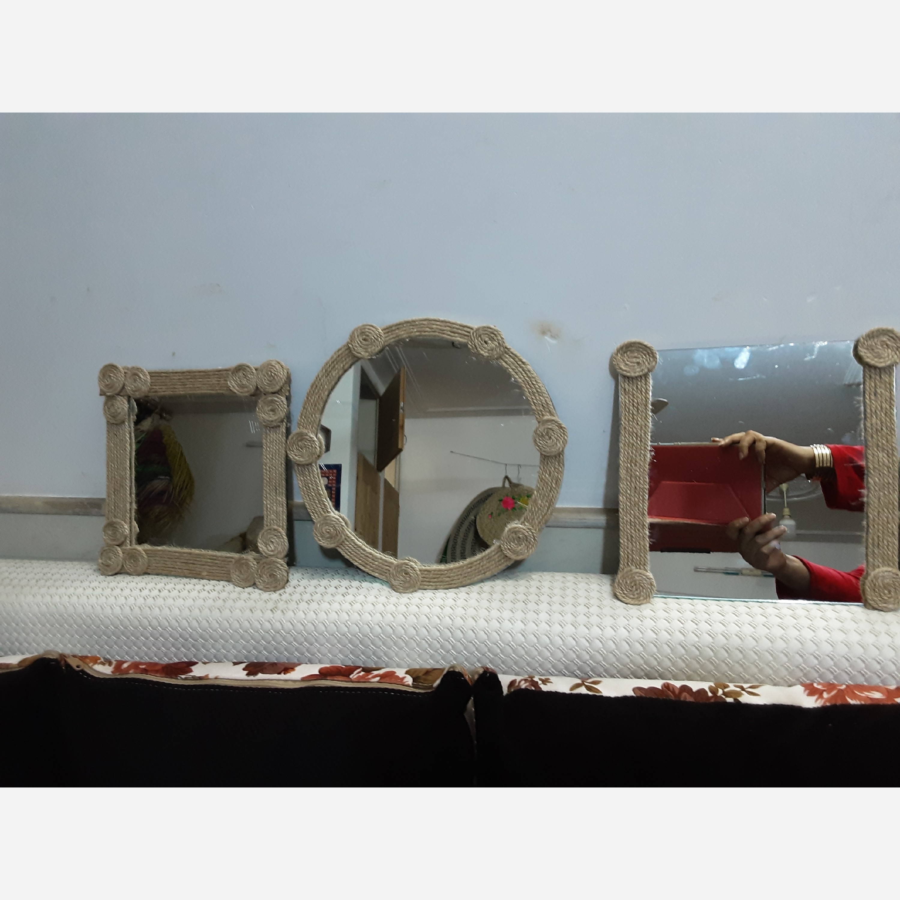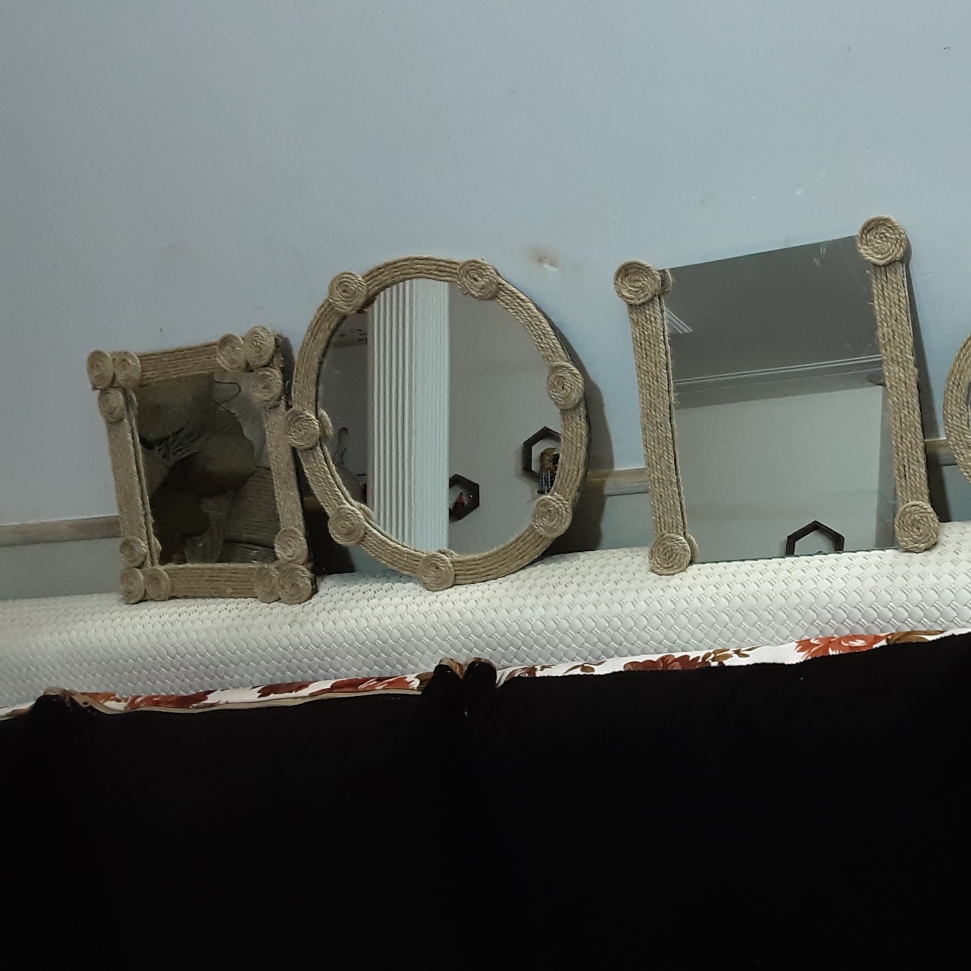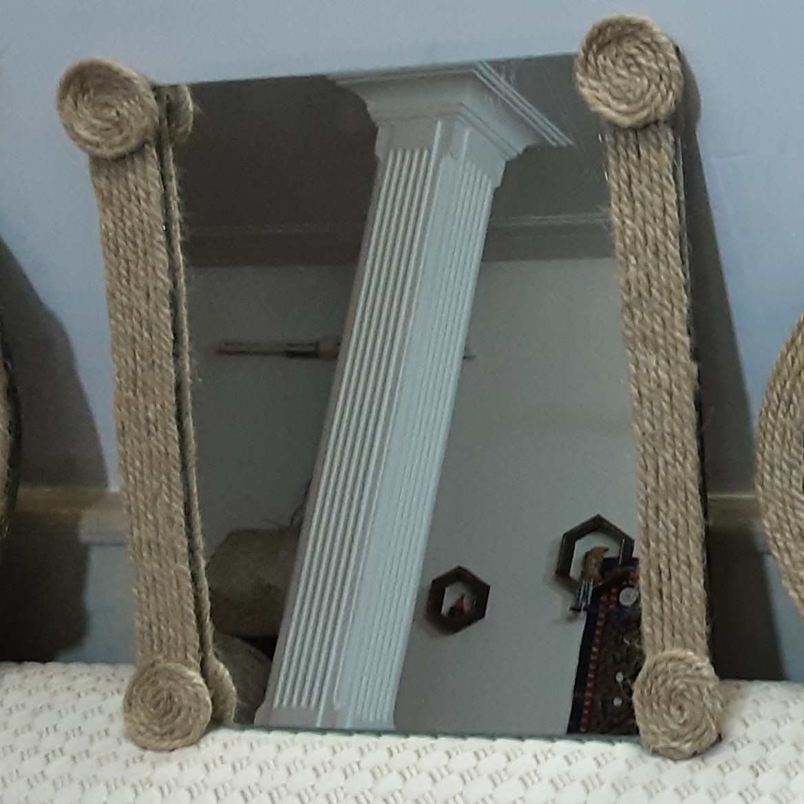 اینه چهار گوشه تزیین شده با نخ کنفی حصیری ساده وطرحدار ورنگی قابل اجراست از بهترین کیفیت وزیبایی برخوردار هستند