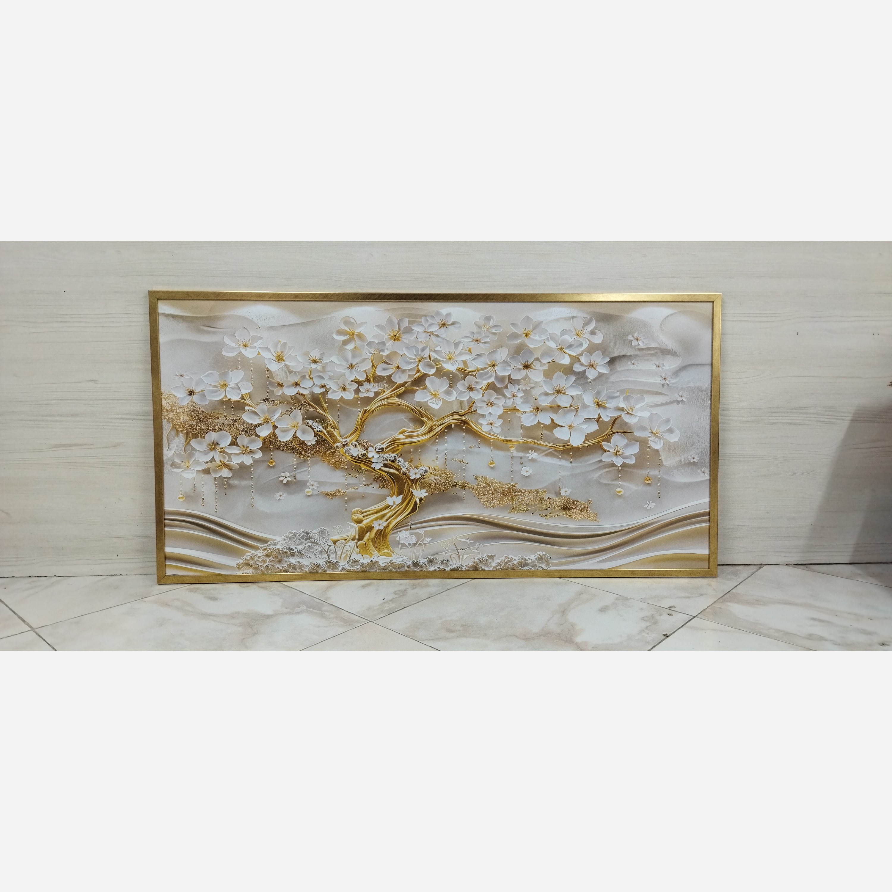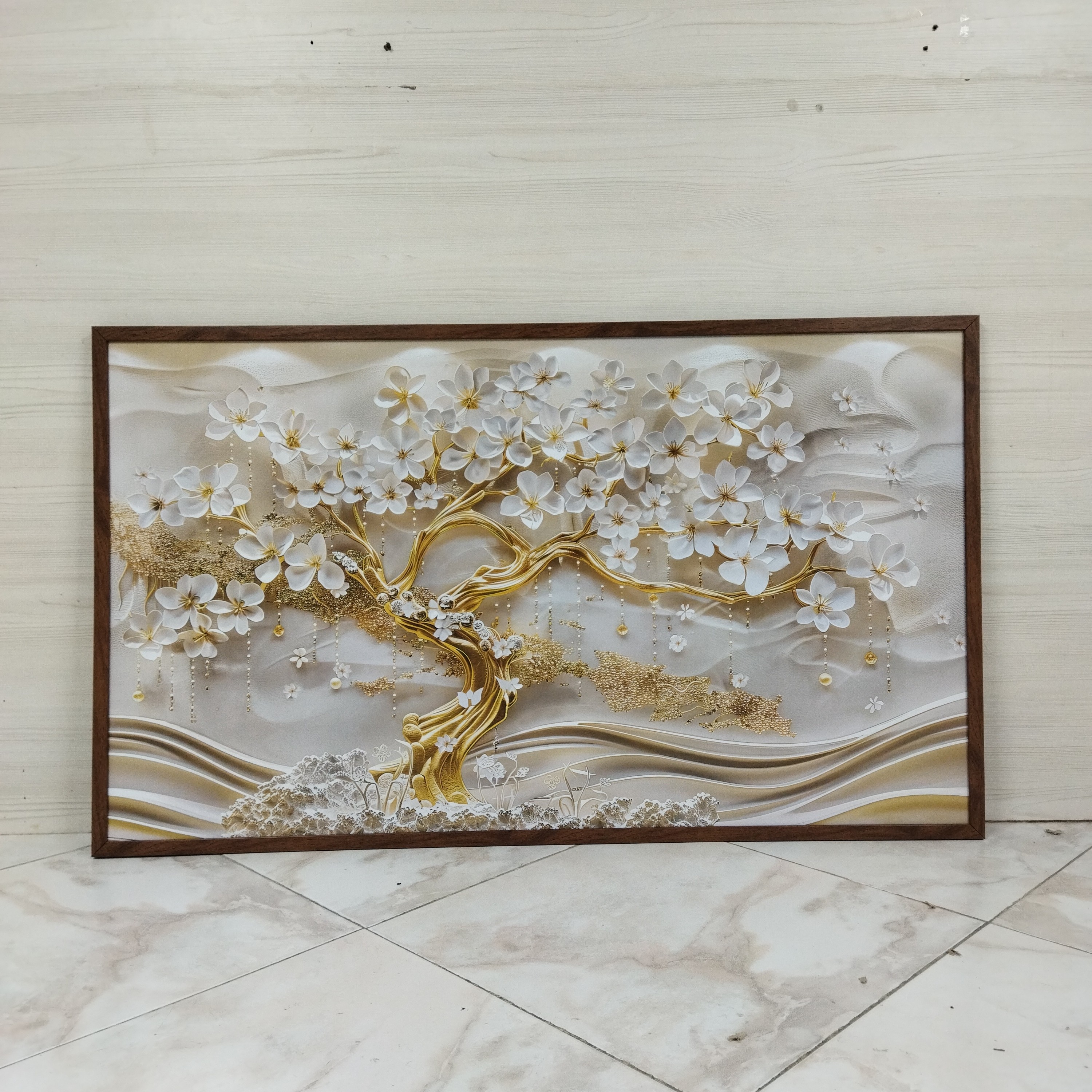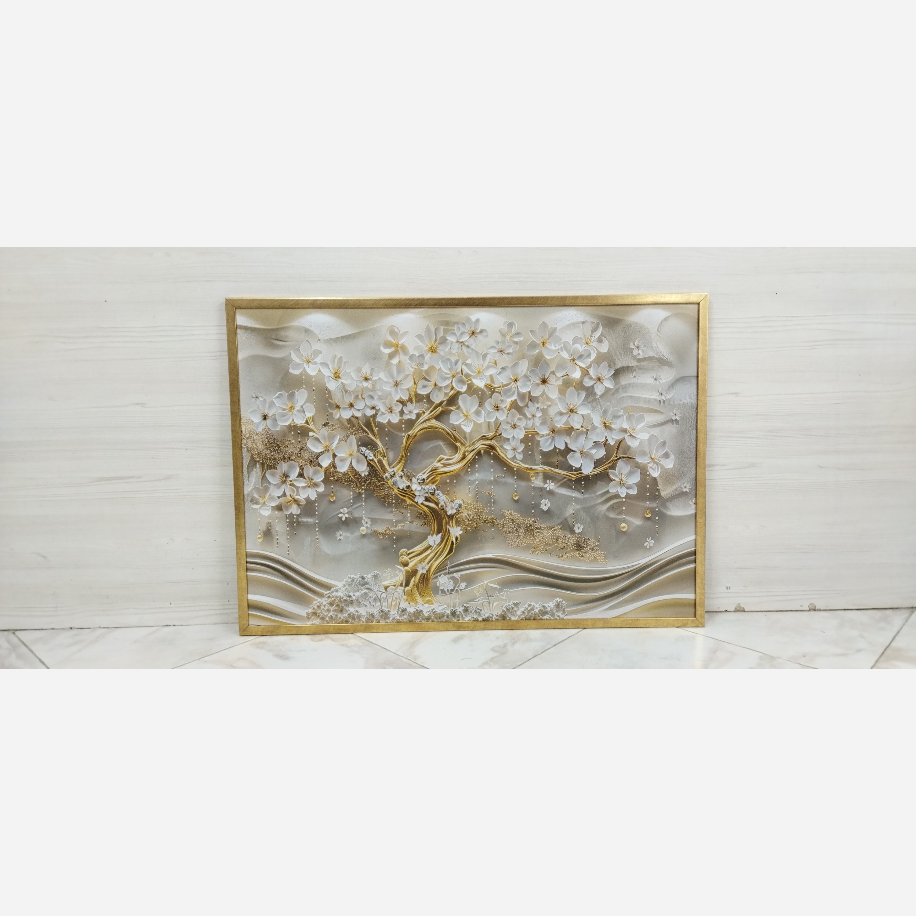 تابلو دکوراتیو درخت طلایی با گل های سفید یک تیکه مبلمونسرا مدل 266972