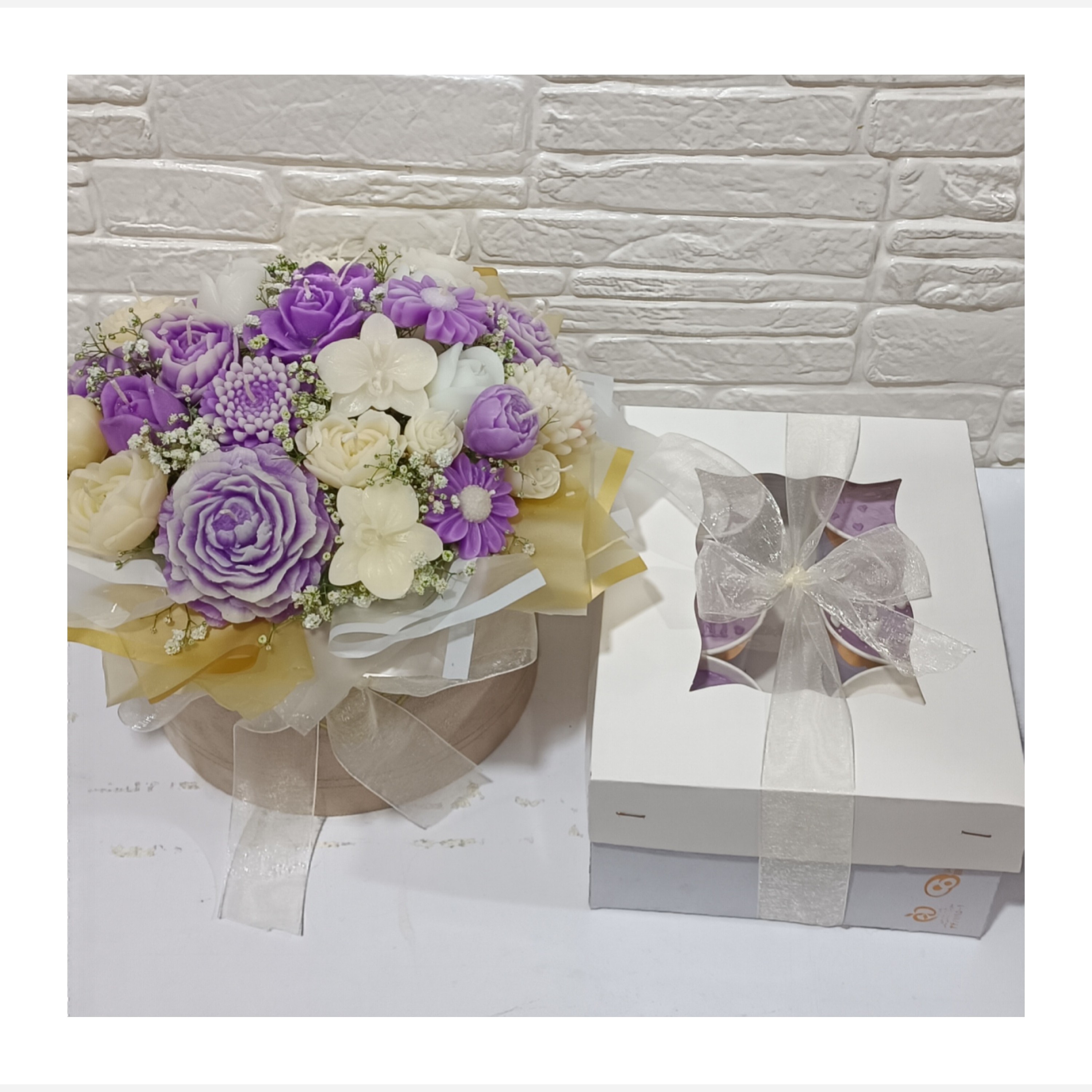 هدیه از این کامل تر نداریم 😍یه باکس گل شمعی جاودانه تو سایز بزرگ که پر از شمع های متنوع است و تو هر رنگی که بخچاهید براتون قابل اجراست. در کنار پک شیش تایی کیک لیوانی خامه ای تازه و با کیفیت خانگی با فیلینگ موز و گردو و نوتلا که طعمشو هیچ جا نخوردی
