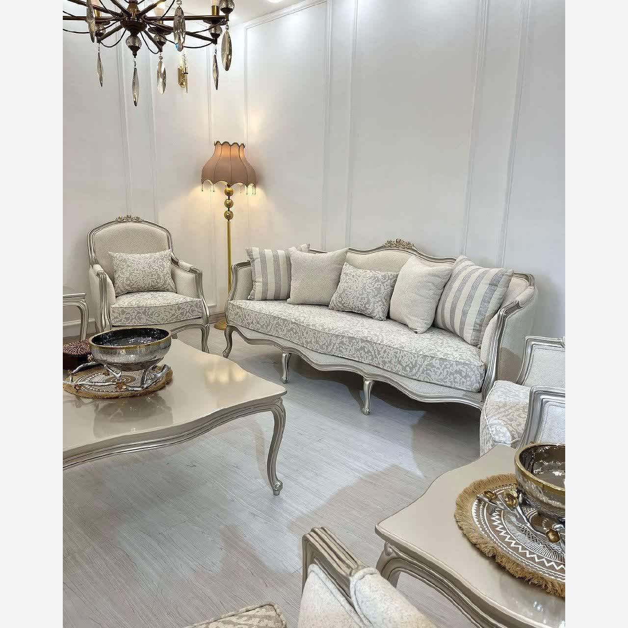 مبل کلاسیک استیل با چوب راش و تنوع رنگ و پارچه به انتخاب مشتری گارانتی 36ماه مبلمونسرا مدل 213253