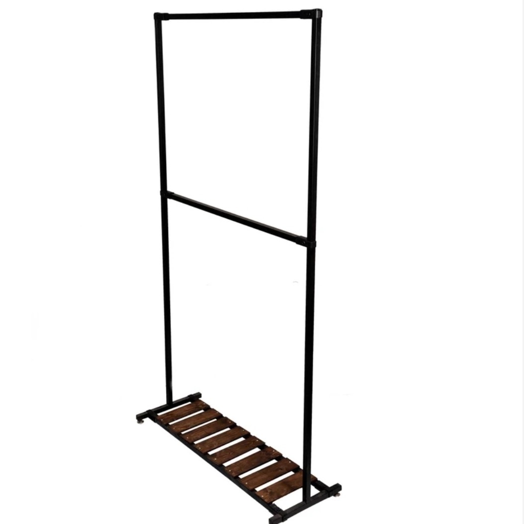 رگال دو طبقه با ارتفاع مناسب و تحمل وزن بالا با ابعاد منطقی و استاندارد که کلی لباس میتونید ازش اویزون کنید و کیف و کفشهاتون رو هم پایینش بزارید طبقه وسطش رو هم خودتون به راحتی میتونید بزرگ و کوچیک کنید