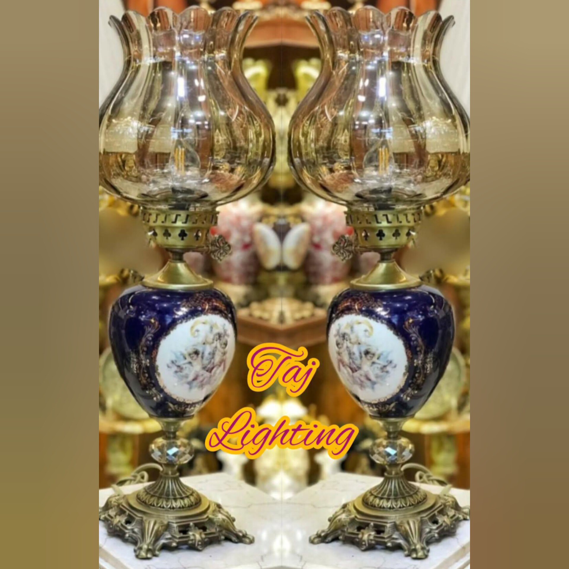 💥قیمت درج شده ، قیمت هر عدد چراغ می باشد جنس لاله : بلور رنگ لاله : شامپاینی جنس وسط تنه : چینی رنگبندی وسط تنه : سفید، زرشکی، سورمه ای ، فیروزه ای ، یشمی ، صورتی ،مغز پسته ای جنس پایه برنز با آبکاری آنتیک
