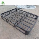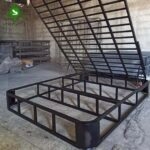 کفی تخت خواب دو نفره جکدار تمام کلاف جنس بدنه این کفی از پروفیل آهنی ساخته شده و بسیار محکم و مقاوم است. طول این کفی 190 سانتی متر، عرض آن 150 سانت و ارتفاع آن 30 سانتی متر است. با توجه به ابعاد مذکور، این کفی مناسب برای تخت خواب های عرض 160 ساخته شده است. شما میتوانید این محصول را در دو رنگ مشکی و طوسی سفارش دهید. جک استفاده شده در این کفی جک با قدرت پمپ 1750 می باشد. در بالای کفی از 16 تسمه به همراه 5 ستون استفاده شده است. همانطور که در تصویر میبینید وسط کفی نیز دارای دو عدد نردبانی بوده و گوشه های کار ورق فلزی خورده است.