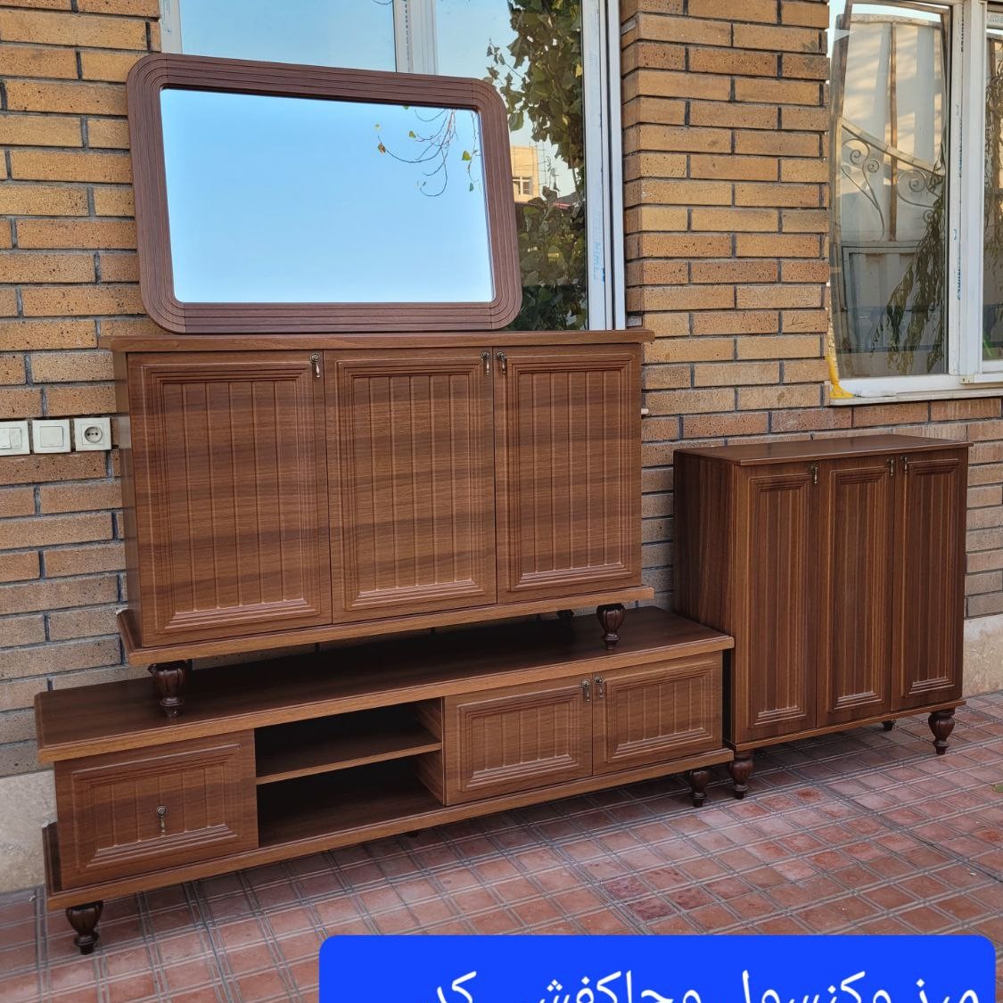 ست میز تلویزیون شبستان کد 219 به همراه قاب آینه و کنسول و جاکفش رنگ گردویی مبلمونسرا مدل 222583