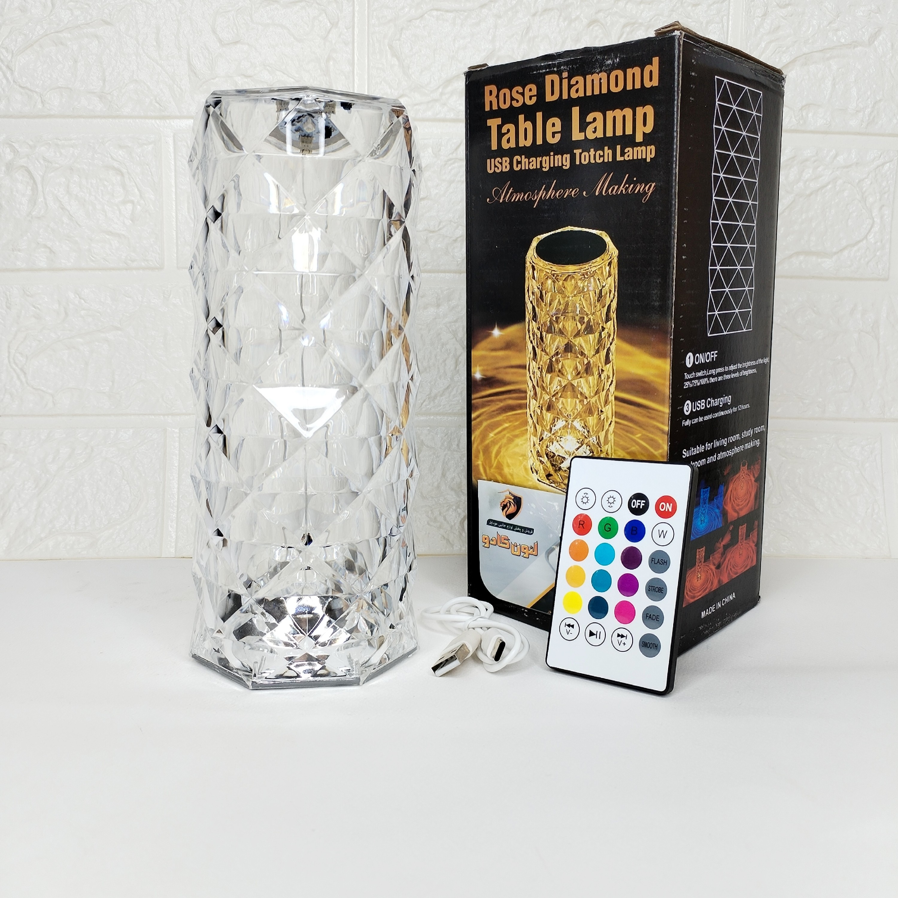 چراغ خواب کریستالی RGB چند حالته لمسی آباژور کریستالی لمسی دارای رقص نور مبلمونسرا مدل 231717