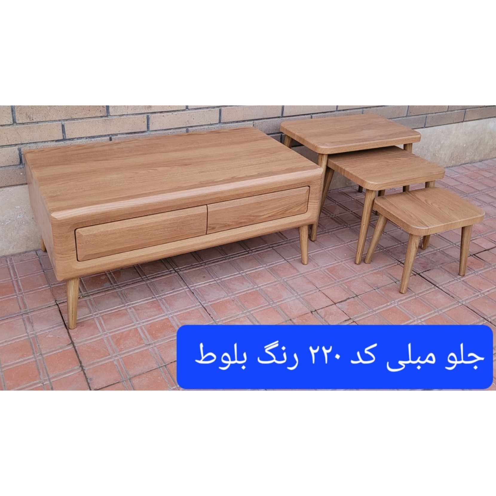 جلومبلی شبستان مدل 220 به همراه سه عدد عسلی رنگ بلوط مبلمونسرا مدل 221038