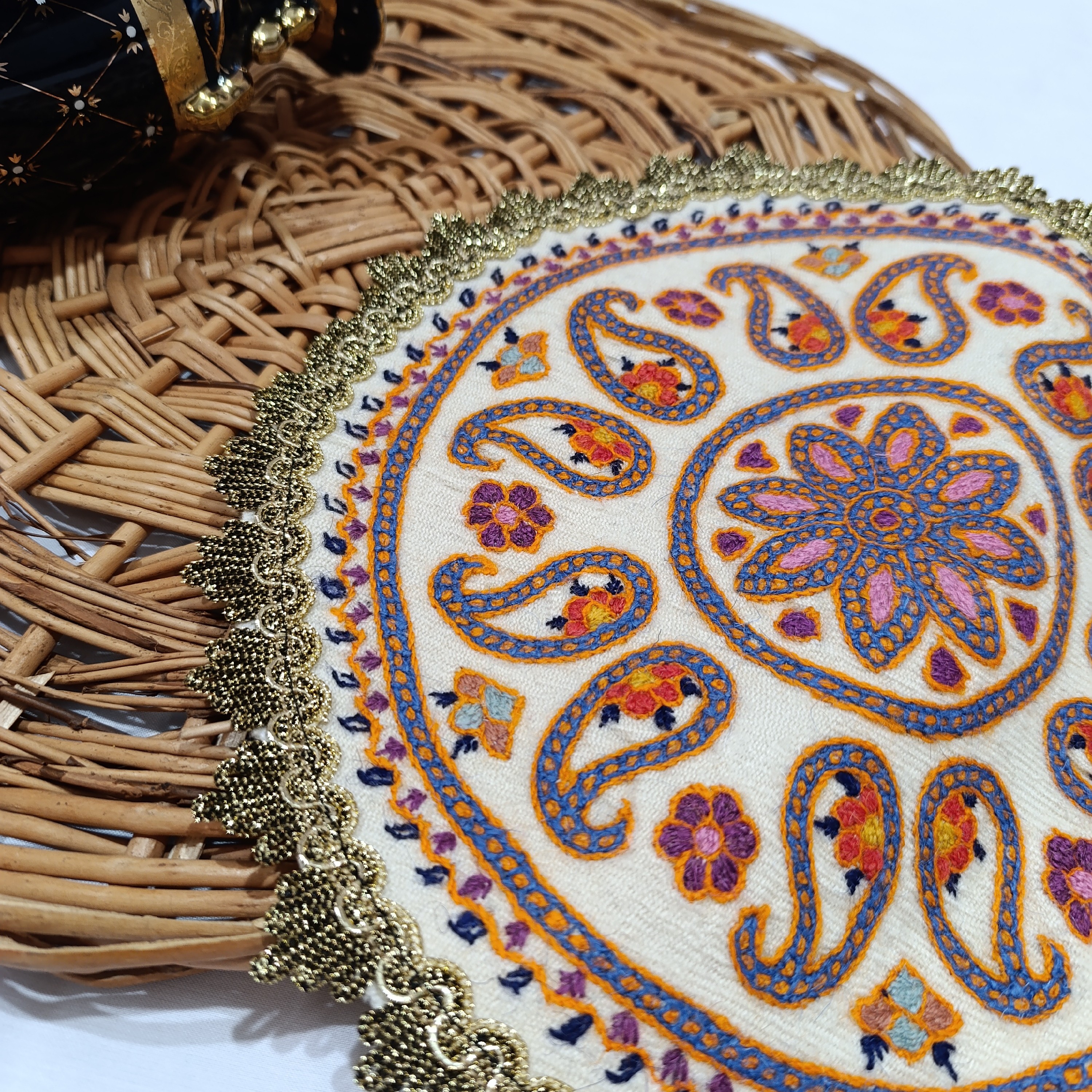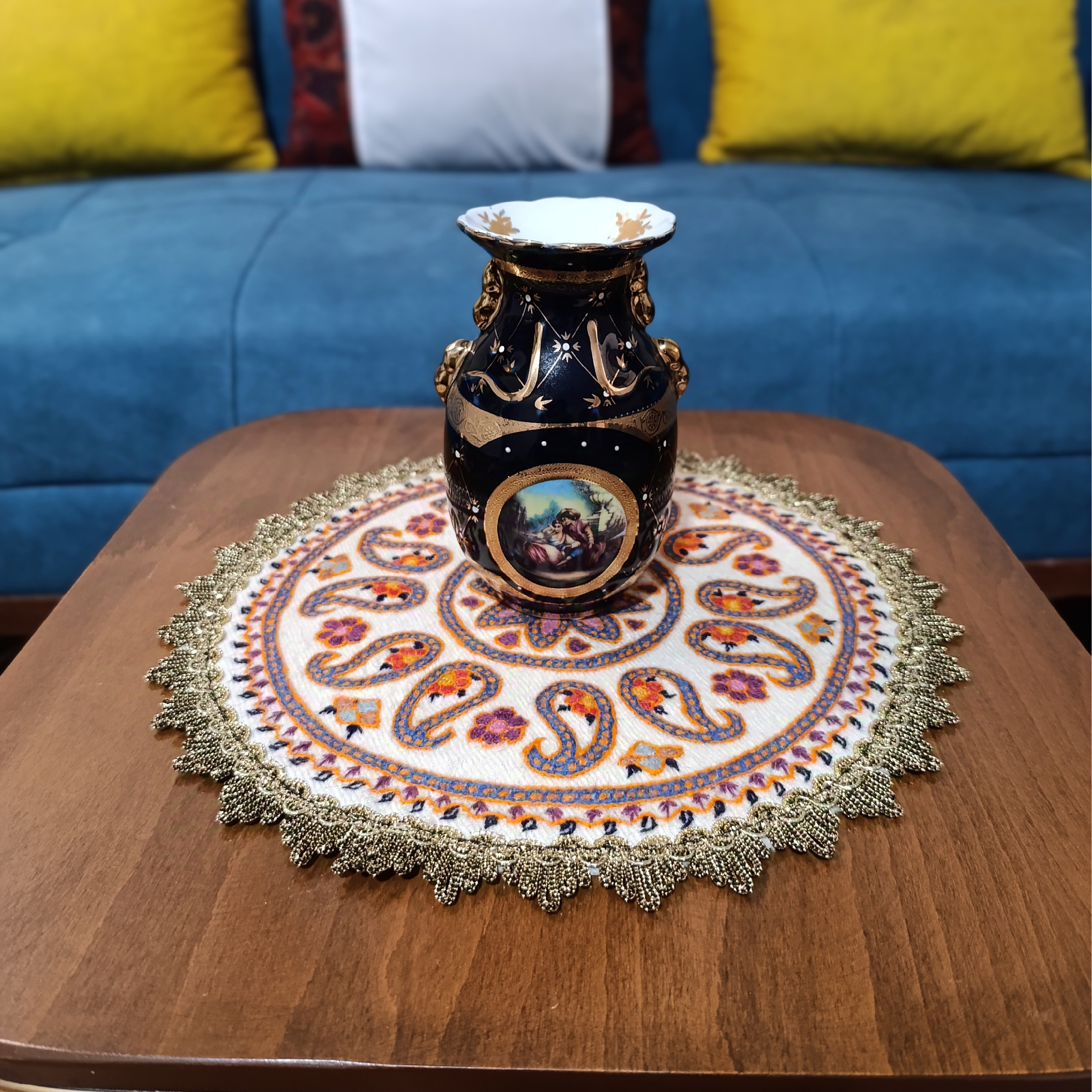 رومیزی پته دوزی زیبا، سوزن دوزی، رومیزی پته کرمان، رومیزی عسلی پته دوخته شده و کار شده مبلمونسرا مدل 299108