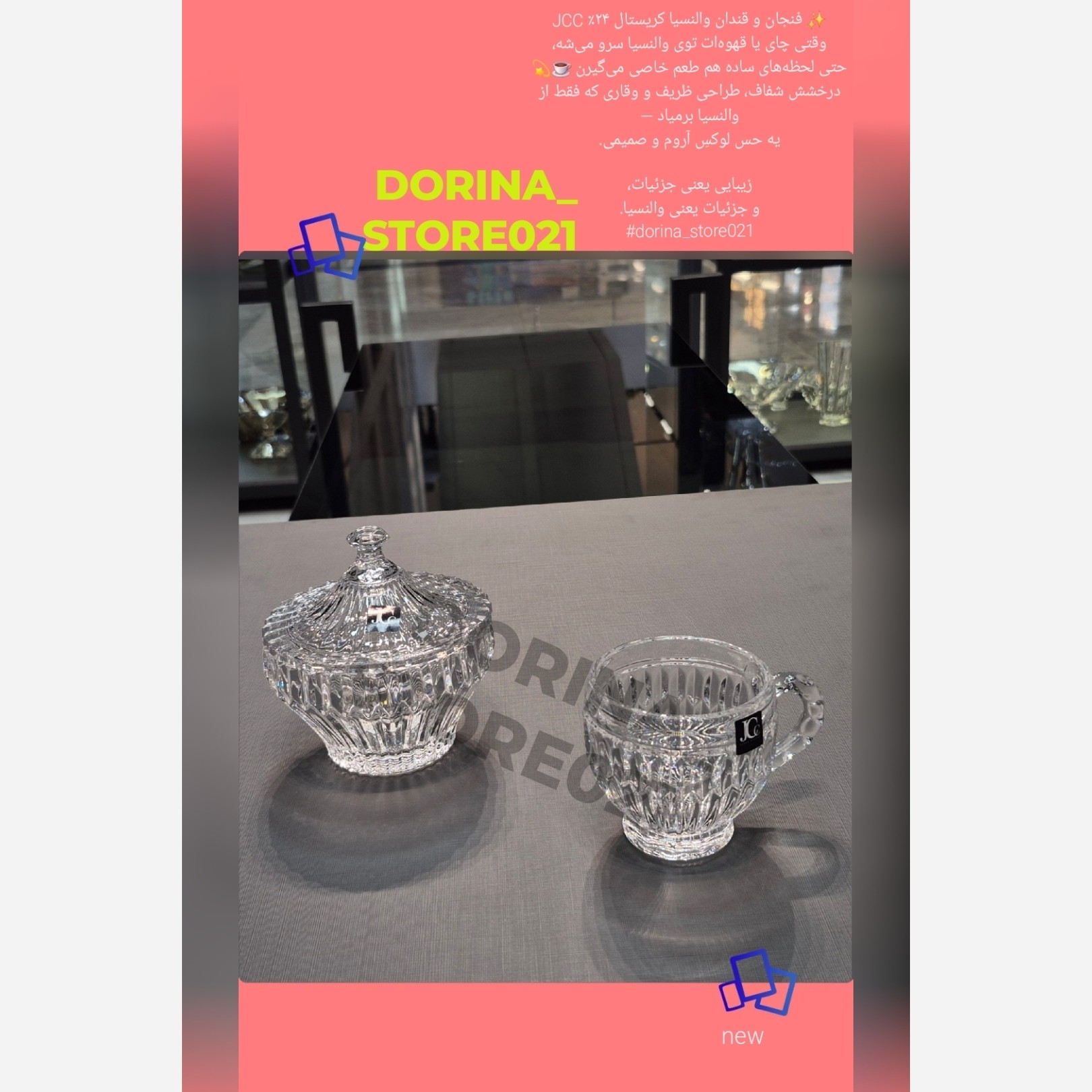 galeri_hosseini که حس اعتماد، سلیقهی خاص و زیبایی را منتقل کند: والنسیا JCC؛ وقتی سادگی، خودش یه سبک زندگیه وقتی میخوای همهچیز مرتب، شیک و باکلاس باشه، سرویس پذیرایی والنسیا از مجموعههای خاص برند JCC یه انتخاب بینقصه. ظرفهایی که با کریستال شفاف وطراحی دلنشینشون، نه فقط پذیرایی میکنن، بلکه حس خوب نظم، آرامش و زیبایی رو به مهمونهات هدیه میدن. یه درخشش آروم و اصیل دارن؛ درست مثل سلیقهی شما!
