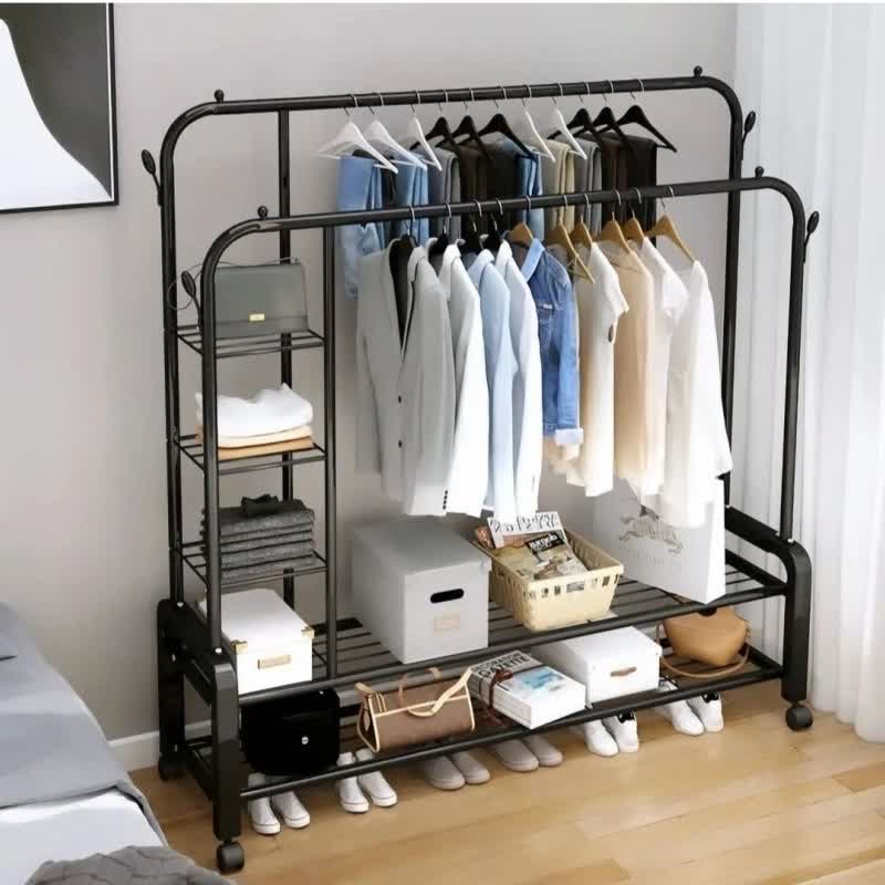 اندازه : ارتفاع 160 سانتیمتر_طول 110 سانتیمتر_فاصله دو ردیف عرض 55 سانتیمتر تحمل وزن : 58 کیلوگرم جنس : فلزی گالوانیزه رنگ کوره ای ساخت : چین زیبا و شیک سفارش قطر