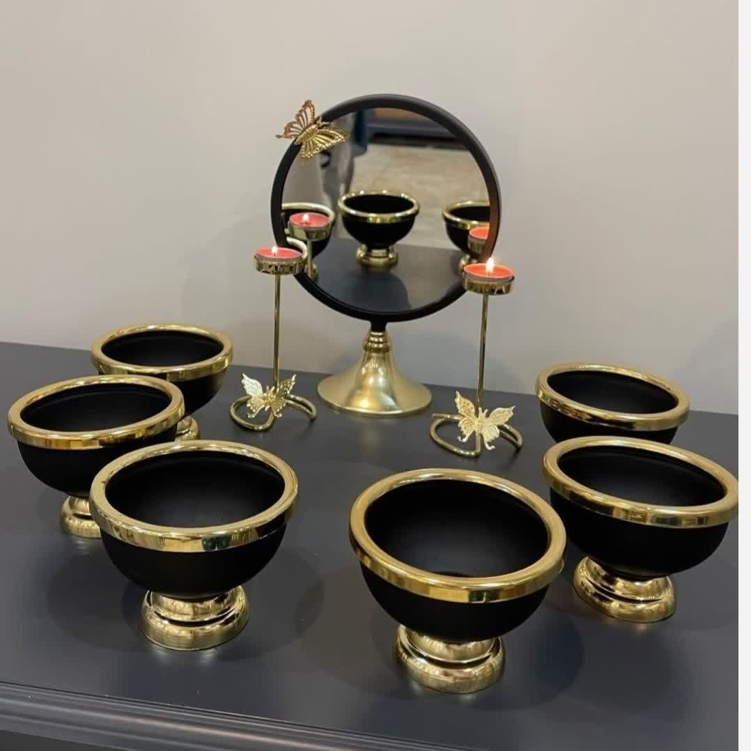 هفت سین فلزی جدید با کاسه سفید و مشکی مبلمونسرا مدل 259231