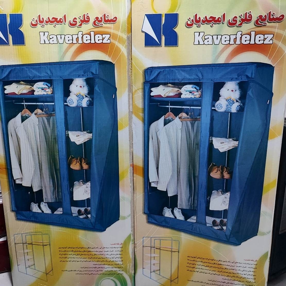 رنگ: زرشکی, سرمه ای, قهوه ای تاشو بسیار باکیفیت قابل حمل و نقل آسان برزنت ضخیم و محکم اسکلت تمام فلزی با استحکام بالا کمد برزنتی ابتکار و امجدیان از از اسکلت کاملا فلزی ساخته شده که مزیت آن نسبت به بعضی از کمدهای مشابه استفاده نکردن از اتصالات پلاستیکی می باشد، چون اتصالات پلاستیکی در اثر وزن لباسها و گذشت زمان دچار شکستگی میگردد، این کمد دوقلو در عرض 110 عمق 50 و ارتفاع 170 سانتیمتر می باشد و دارای دو درب است که در قسمت سمت راست یک طبقه در بالا و در فضای پایین لوله ای جهت آویزان نمودن لباس ها تعبیه گردیده و در قسمت سمت چپ شامل چند طبقه جهت چیدمان لباس ها، کفش و یا کیف می باشد. این کمد با راهنمای نصب ارائه میگردد که به راحتی قابل مونتاژ است.