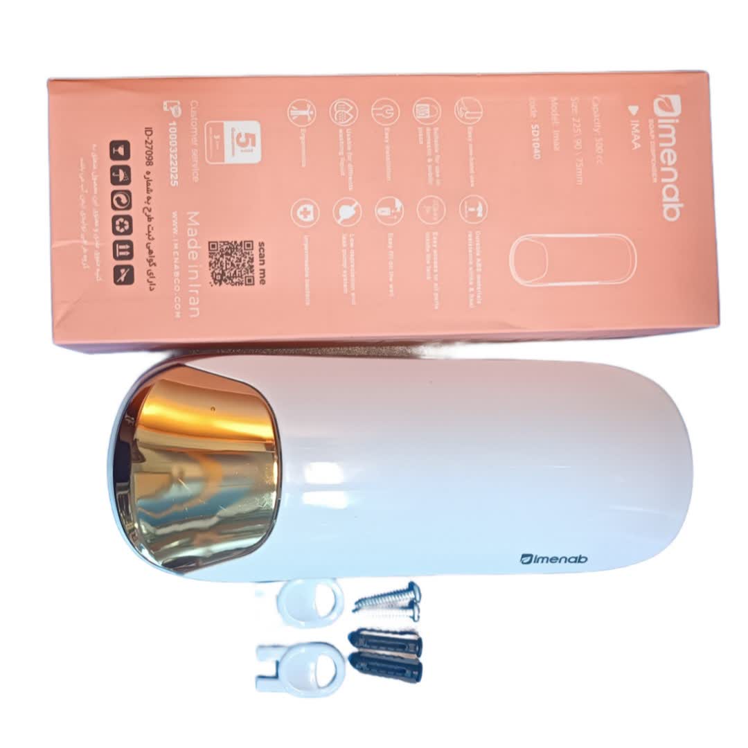 پمپ مایع دیواری ایمن آب مدل ایما دگمه طلایی یکی دیگرازمحصولات زیبای شرکت ایمن آب است این محصول دارای سیستم قفل برای مکانهای عمومی و خانگی قابلیت نصب پمپ مایع و فوم تنها با تعویض پمپ قابلیت مصرف خانگی، عمومی و صنعتی قابلیت پرکردن مخزن بدون جداسازی دارای ارگونومی منحصر به فرد استفاده بهینه از فضا می باشد 5سال ضمانت تعویض این محصول با داشتن اجزاء با کیفیت و مقاوم، یک محصول ماندگار و پایدار است که شما می توانید برای مدت طولانی از آن استفاده کنید. اما اگر در هر صورتی مشکلی برای محصول پیش آمد، شما می توانید از 5 سال ضمانت تعویض که شرکت ایمن آب برای این محصول ارائه می دهد، بهره مند شوید