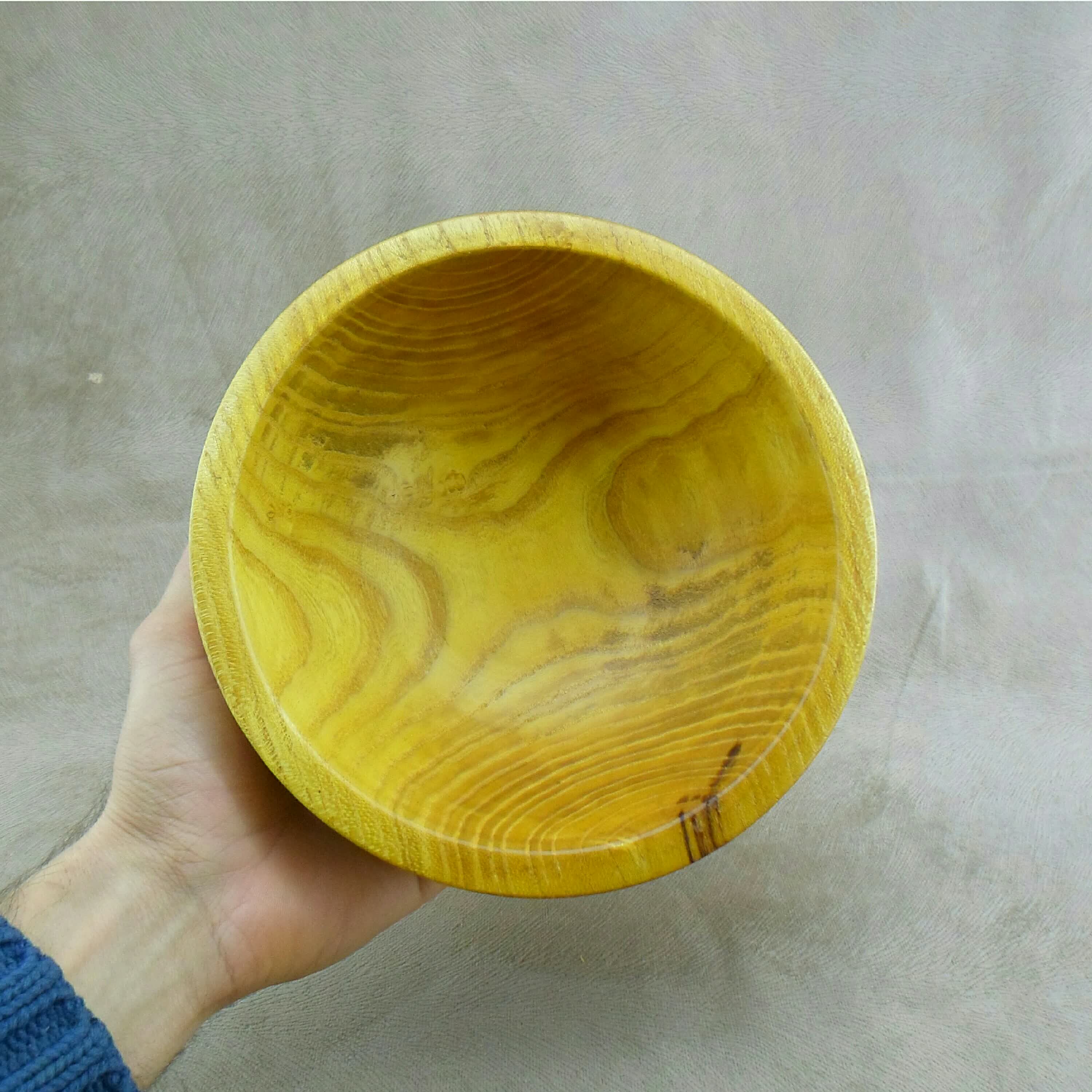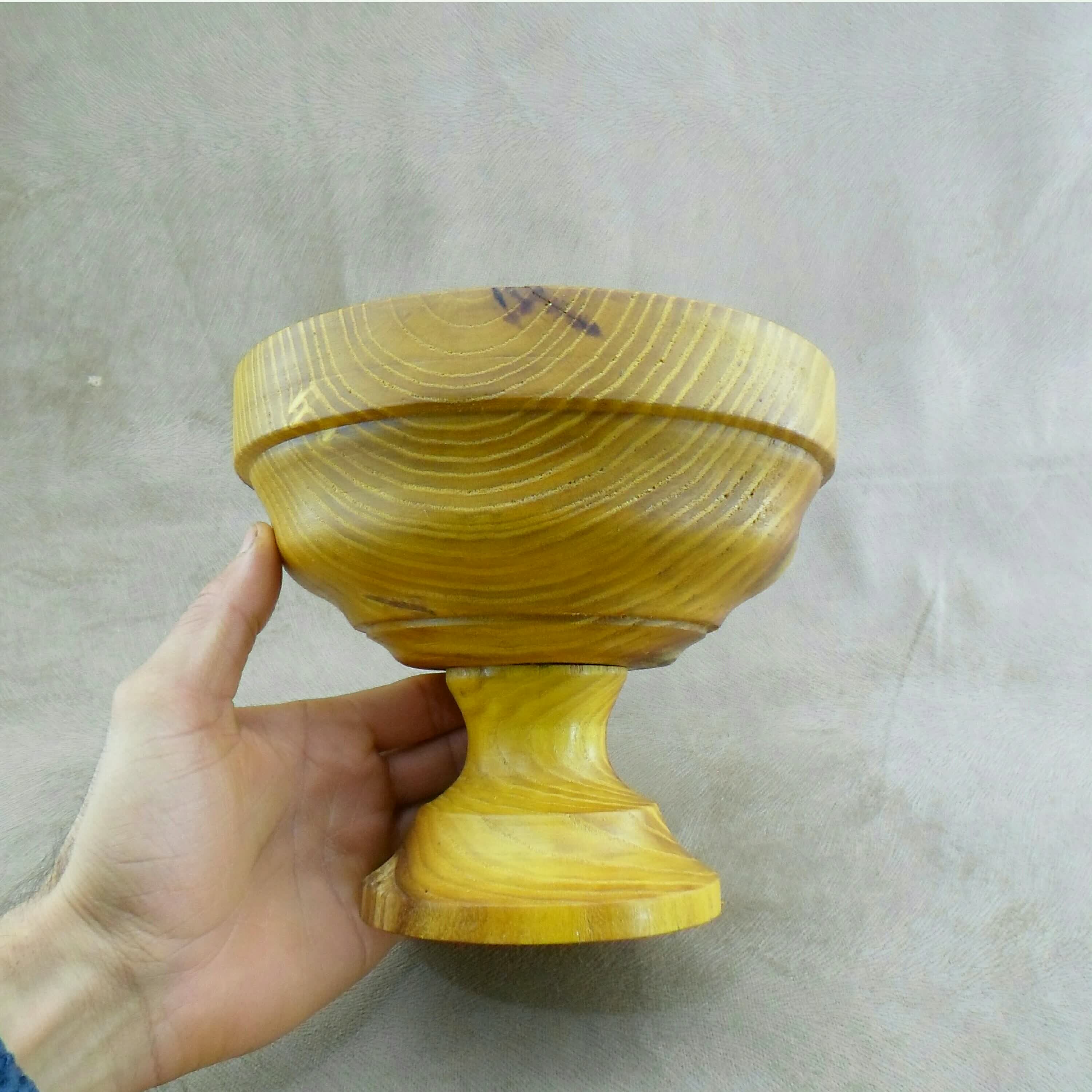 کاسه خراطی شده پایه دار با طراحی شیک و زیبا ، عمق بسیار مناسب برای شکلاتخوری و مخصوصا آجیل خوری داره ، ساخته شده از چوب توت طلایی درجه یک ، رگه های کار بسیارزیبا و کاملا مشخص ، پوشش محافظ کار روغن گیاهی کاملا طبیعی . کیفیت کار در تصویر کاملا مشخص هست . گفتنیست وجود گره ، ترک های ریز و بتونه در کارهای چوبی کاملا طبیعی هست . ارادتمند شما ، کارگاه