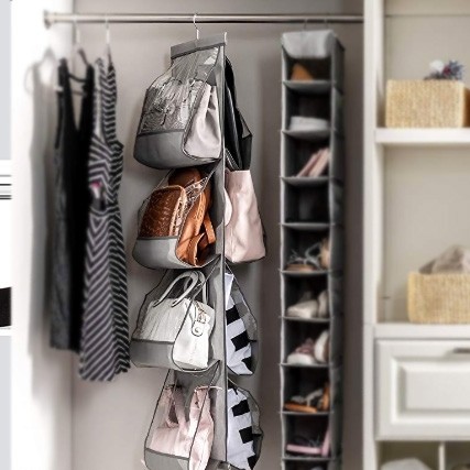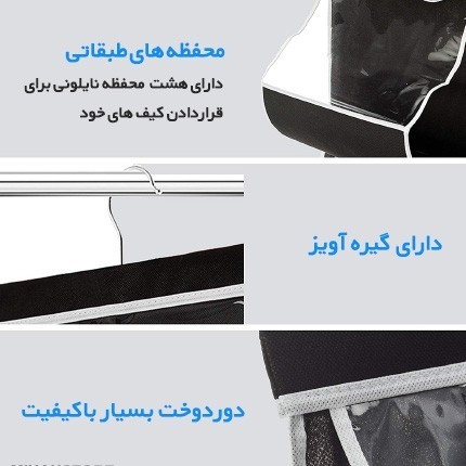 آویز کیف طبقاتی داخل کمد محصولی نوین و بسیار کاربردی است. این آویز به صورت دوطرفه همراه با قلاب آویز جهت آویزان کردن داخل کمد و یا پشت درب می باشد. آویز کیف طبقاتی امکان استفاده از حداقل فضای ممکن برای نگهداری کیف های شما را فراهم می کند. فضای محفظه های نگهدارنده به گونه ای طراحی شده که علاوه بر کیف از آن می توان جهت نگهداری کفش نیز استفاده نمود. از دیگر ویژگی های این آویز، جلوگیری از کثیف شدن، له شدن و خراب شدن کیف و کفش است. محصولی با طراحی جدید، ساده و در عین حال بسیار کاربردی که می تواند مشکل شما در نگهداری از کیف های دستی را برطرف کند. آویز و نگهدارنده کیف به صورت دوطرفه طراحی شده و ظرفیت آن 8 کیف می باشد.