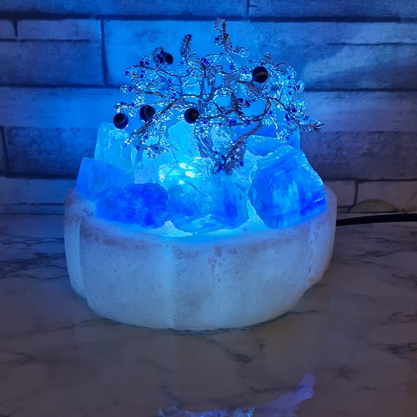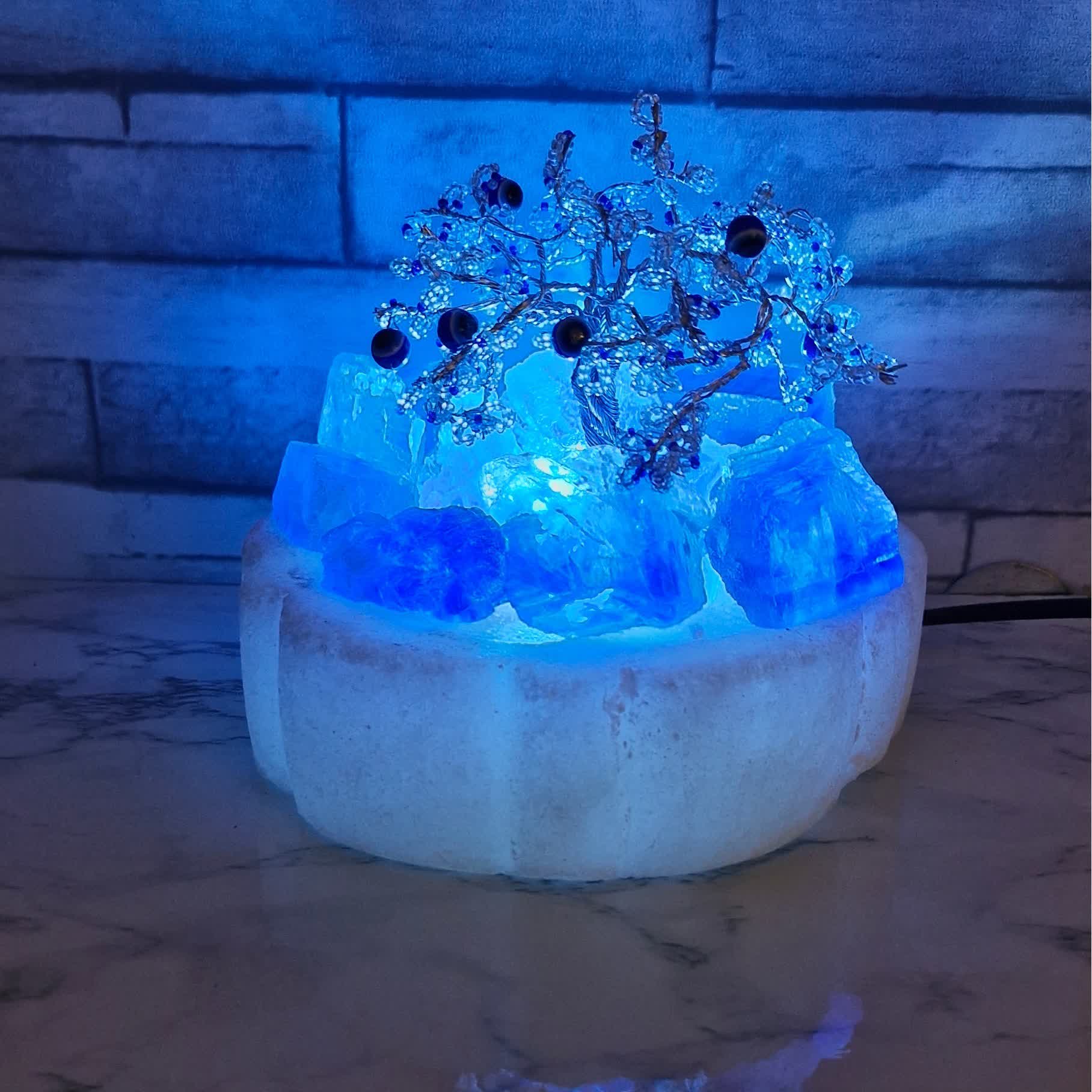 آباژور درختچه با سنگ نمک کریستال آبی درجه یک گرمسار مبلمونسرا مدل 234134