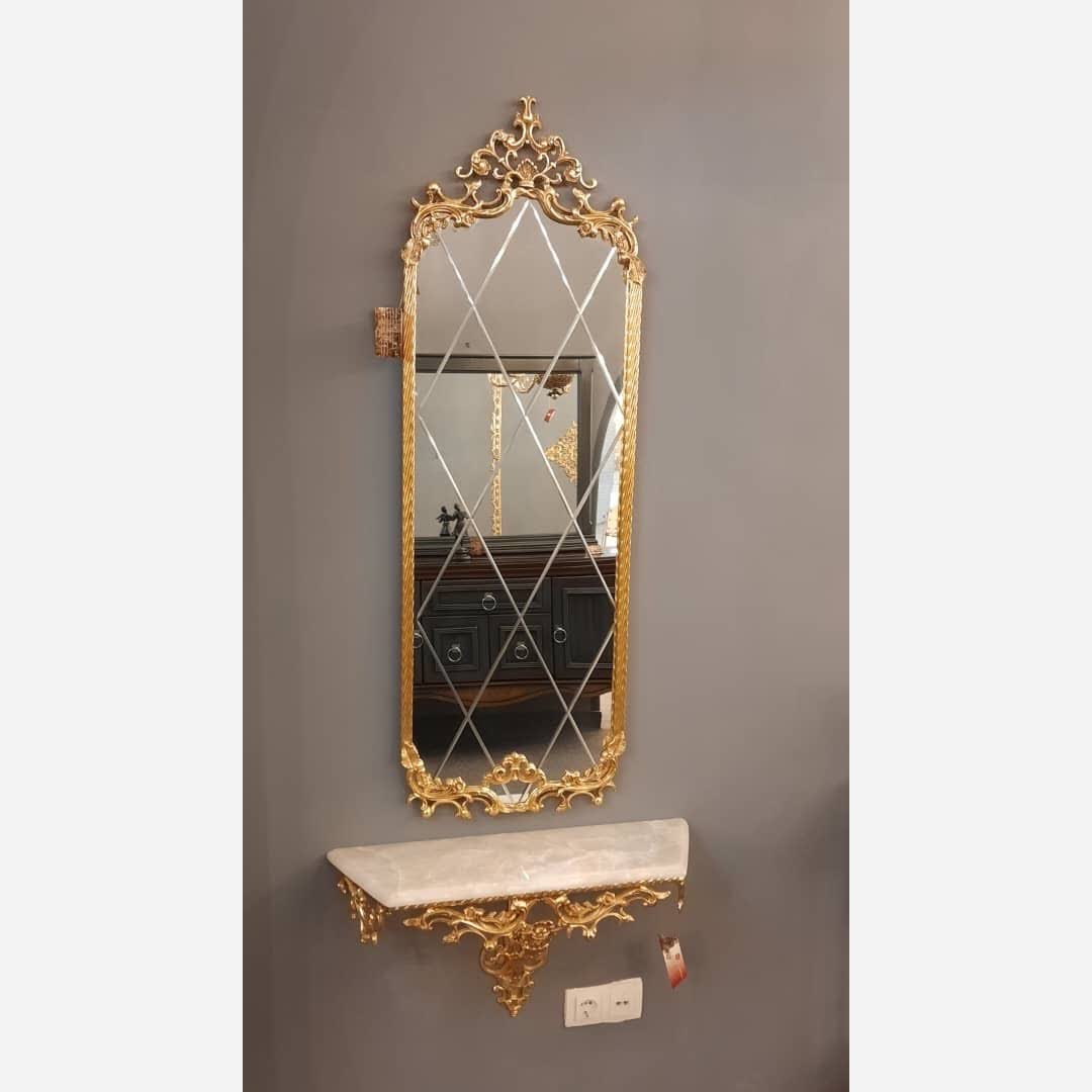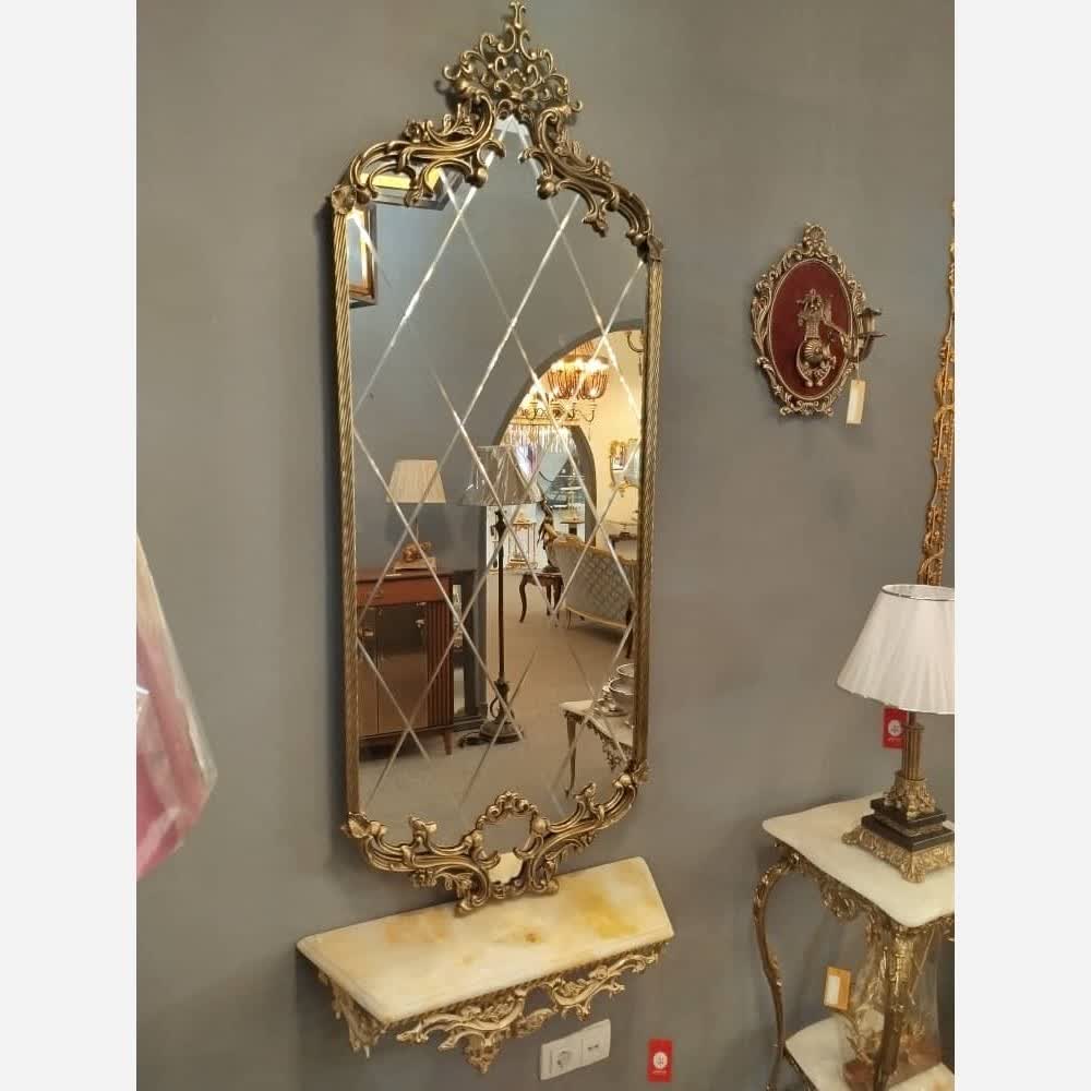 آینه قدی دیواری برنز گلد فوری آبکاری طلا آیینه کنسول دیوارکوب برنزی مبلمونسرا مدل 222020